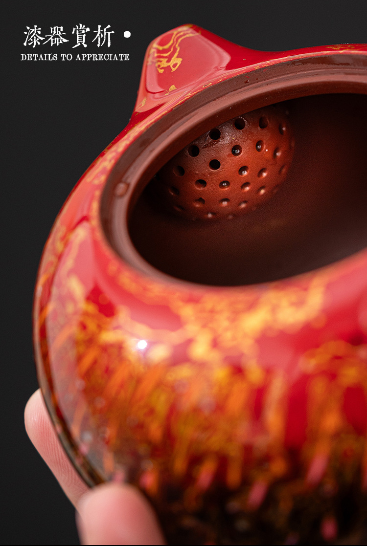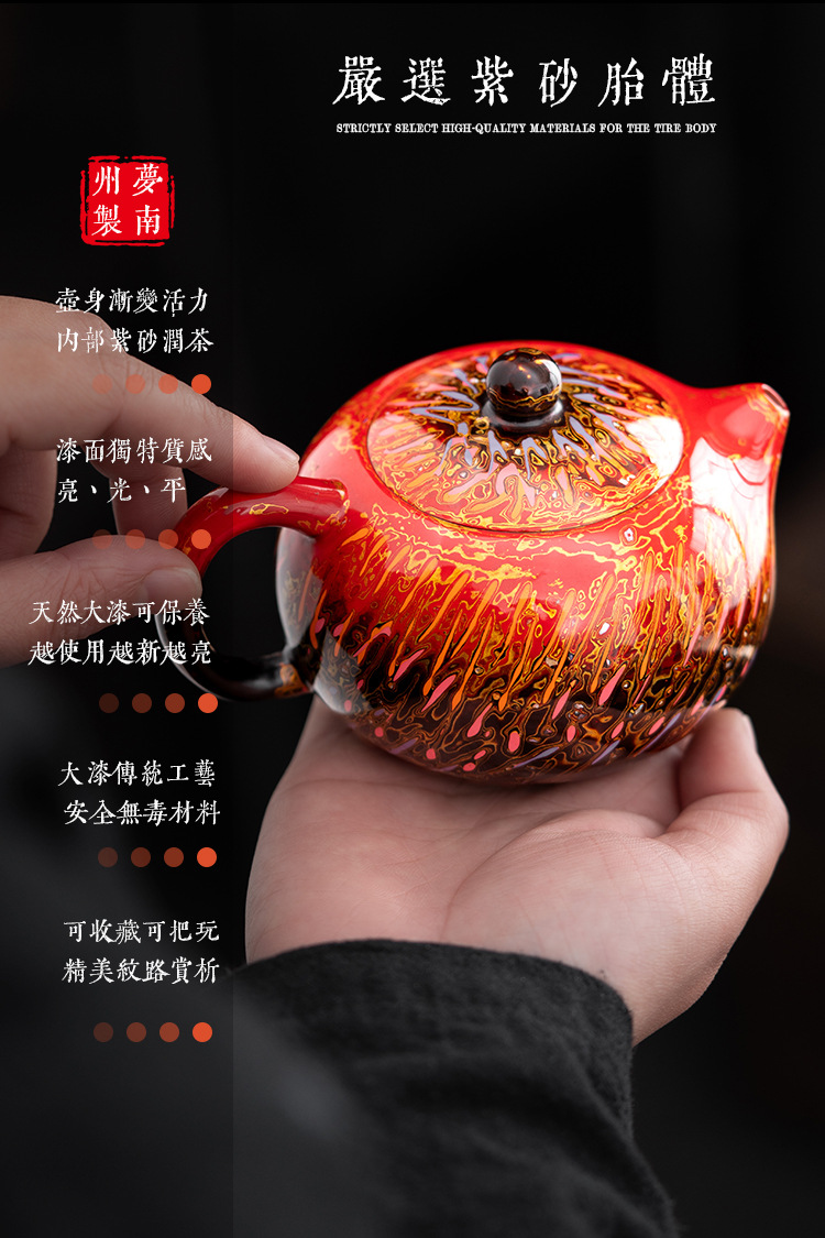 - Bộ trà sơn mài Suyuan, ấm trà sơn mài xà cừ, hộp quà tặng ấm trà Xishi thủ công dung tích lớn màu tím cao cấp