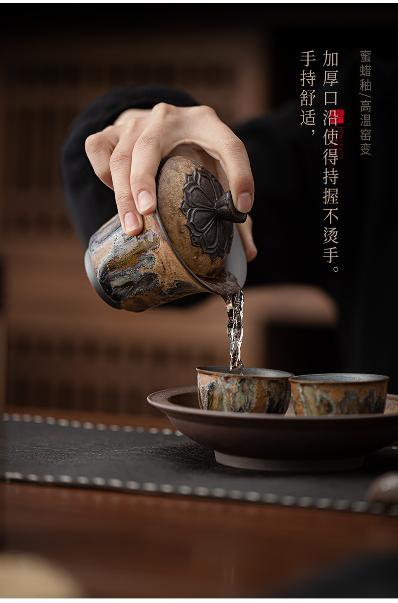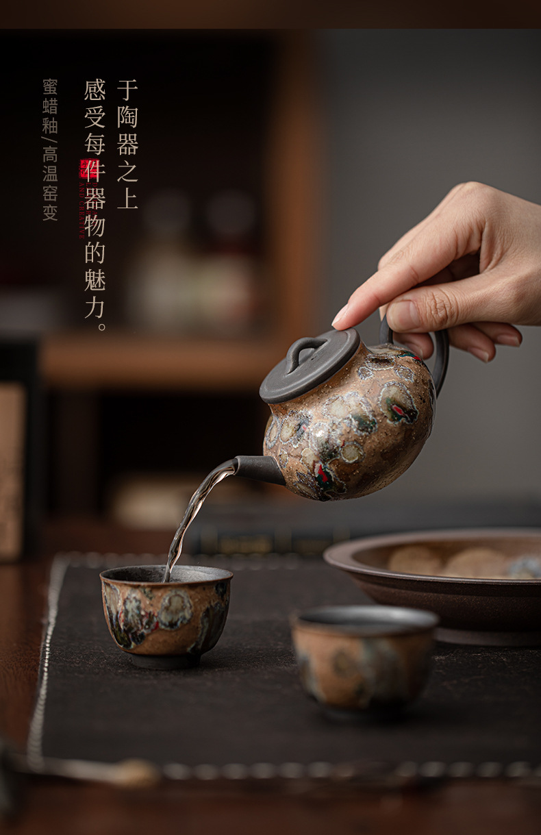 - Bộ trà thay đổi lò tráng men sáp ong một ấm hai cốc nhóm trà gốm sứ cổ điển ấm trà có nắp cốc trà kèm quà tặng