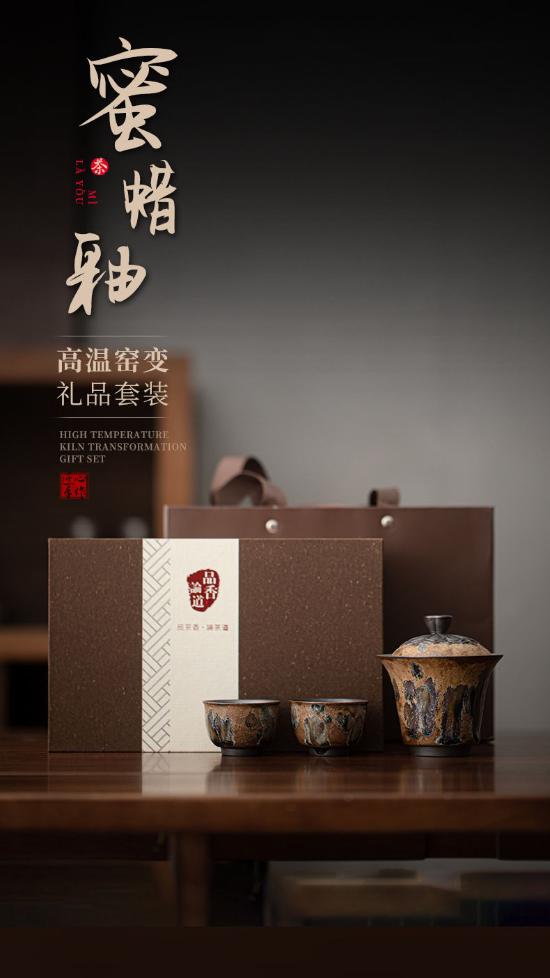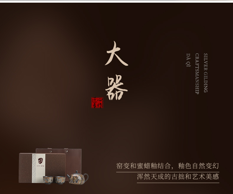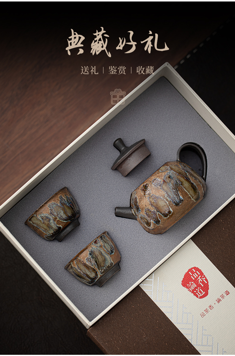 Bộ trà thay đổi lò tráng men sáp ong một ấm hai cốc nhóm trà gốm sứ cổ điển ấm trà có nắp cốc trà kèm quà tặng