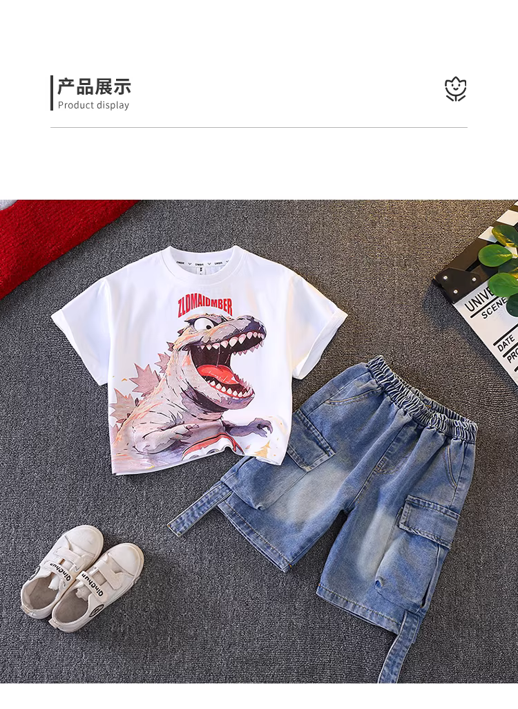 - Bộ trang phục hè cho bé trai 2025, bộ hai mảnh ngắn tay mùa hè mới cho bé trai, phong cách đường phố thời trang hoạt hình