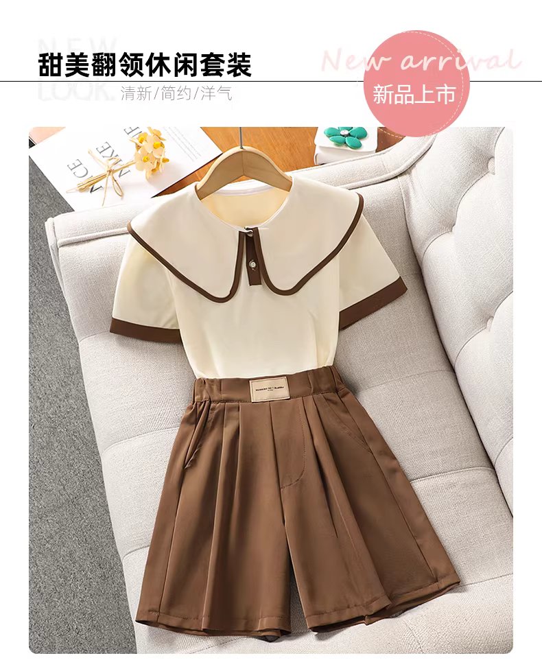 - Bộ trang phục mùa hè cho bé gái 2025 kiểu mới, thời trang thường ngày mùa hè dành cho bé gái lớn, bộ hai mảnh quần đùi ngắn tay rộng rãi thời trang trẻ em