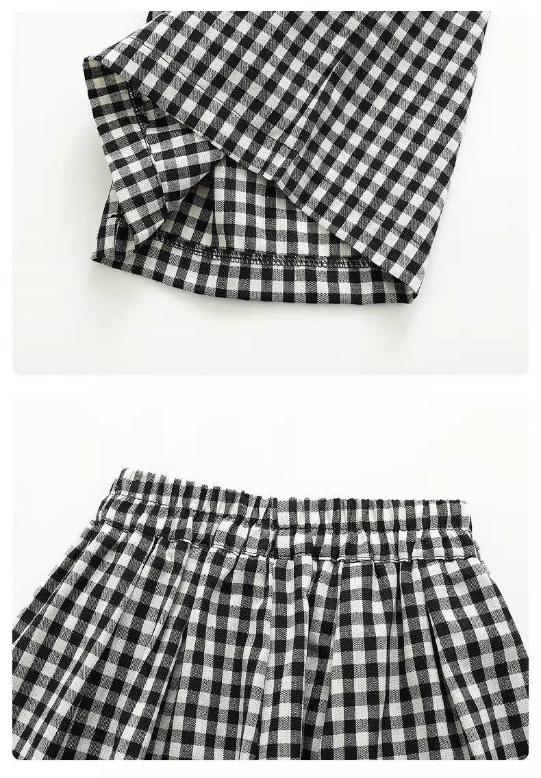 - Bộ trang phục mùa hè không tay cho bé gái 2025 kiểu mới dành cho bé gái lớn hơn, áo kiểu Hàn Quốc và quần váy, quần ống rộng kẻ caro cho bé gái