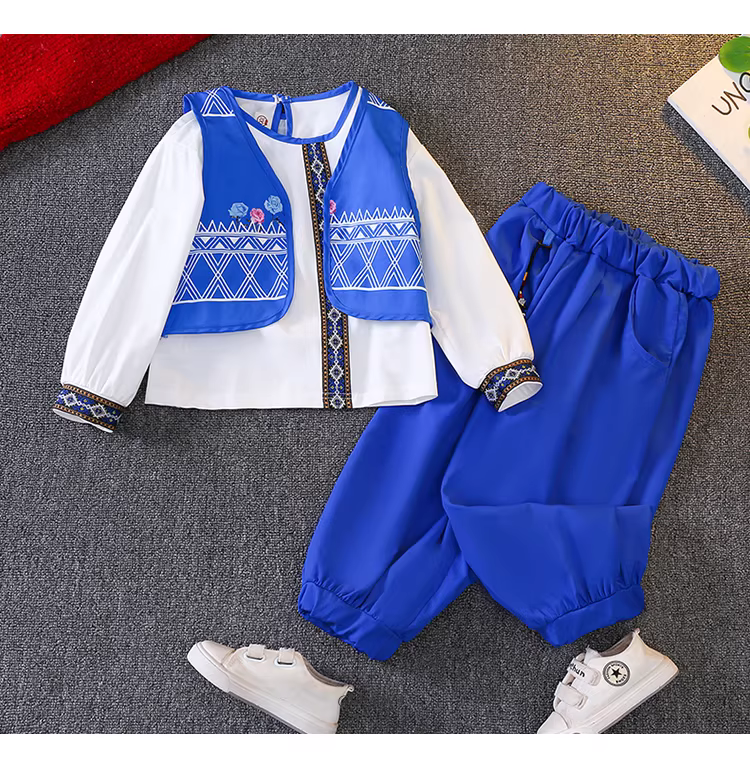 - Bộ trang phục xuân thu cho bé trai 2025, quần áo dân tộc mới, trang phục dân tộc Miao, bộ đồ dài tay, quần áo trẻ em