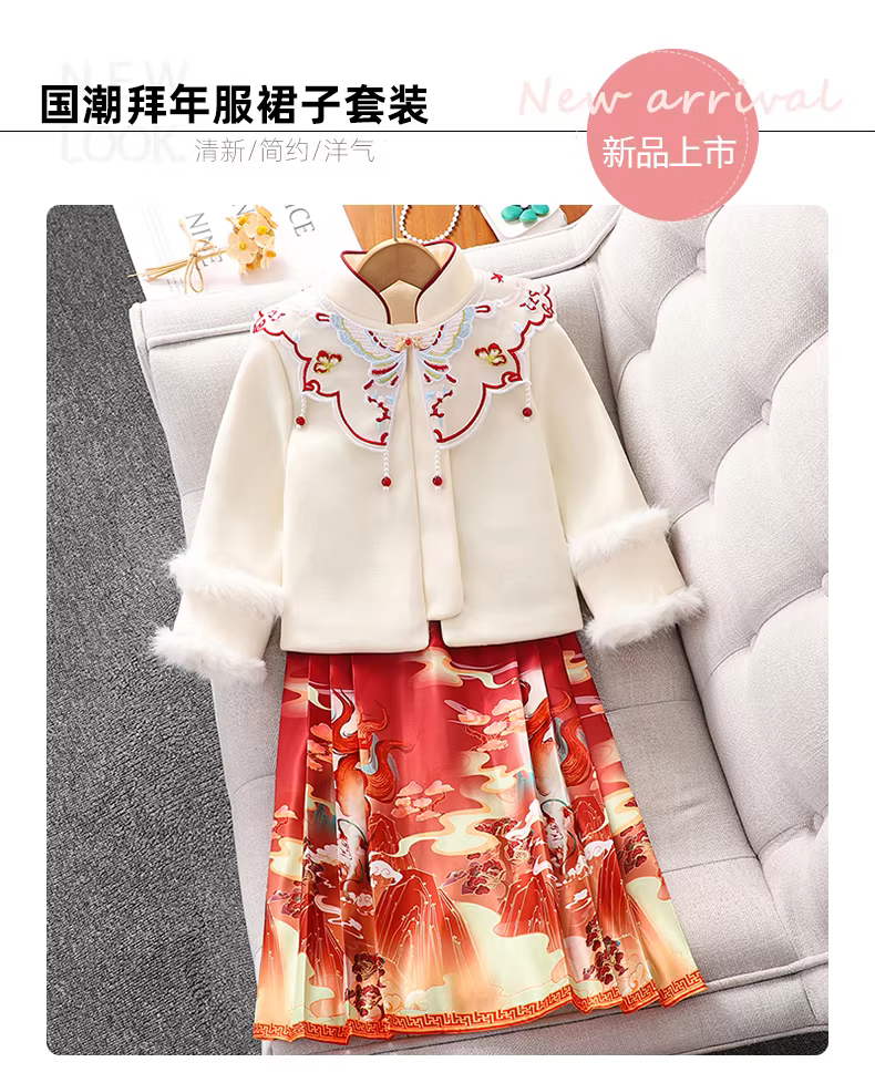 - Bộ váy mặt ngựa dành cho bé gái Trang phục năm mới cho bé gái mùa thu đông Quần áo Tết Nguyên đán Trung Quốc Quần áo mùa đông Tang suit Hanfu Quần áo mùa đông Váy chào mừng năm mới dành cho trẻ em