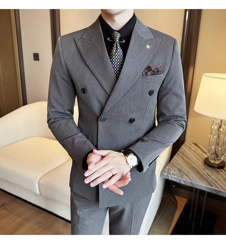 Bộ vest nam hai hàng khuy, kiểu dáng công sở lịch lãm, đa năng, phong cách Anh, ôm dáng, vest cưới chú rể, bộ ba món