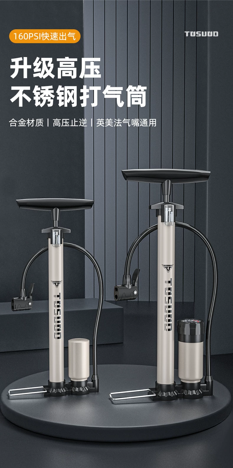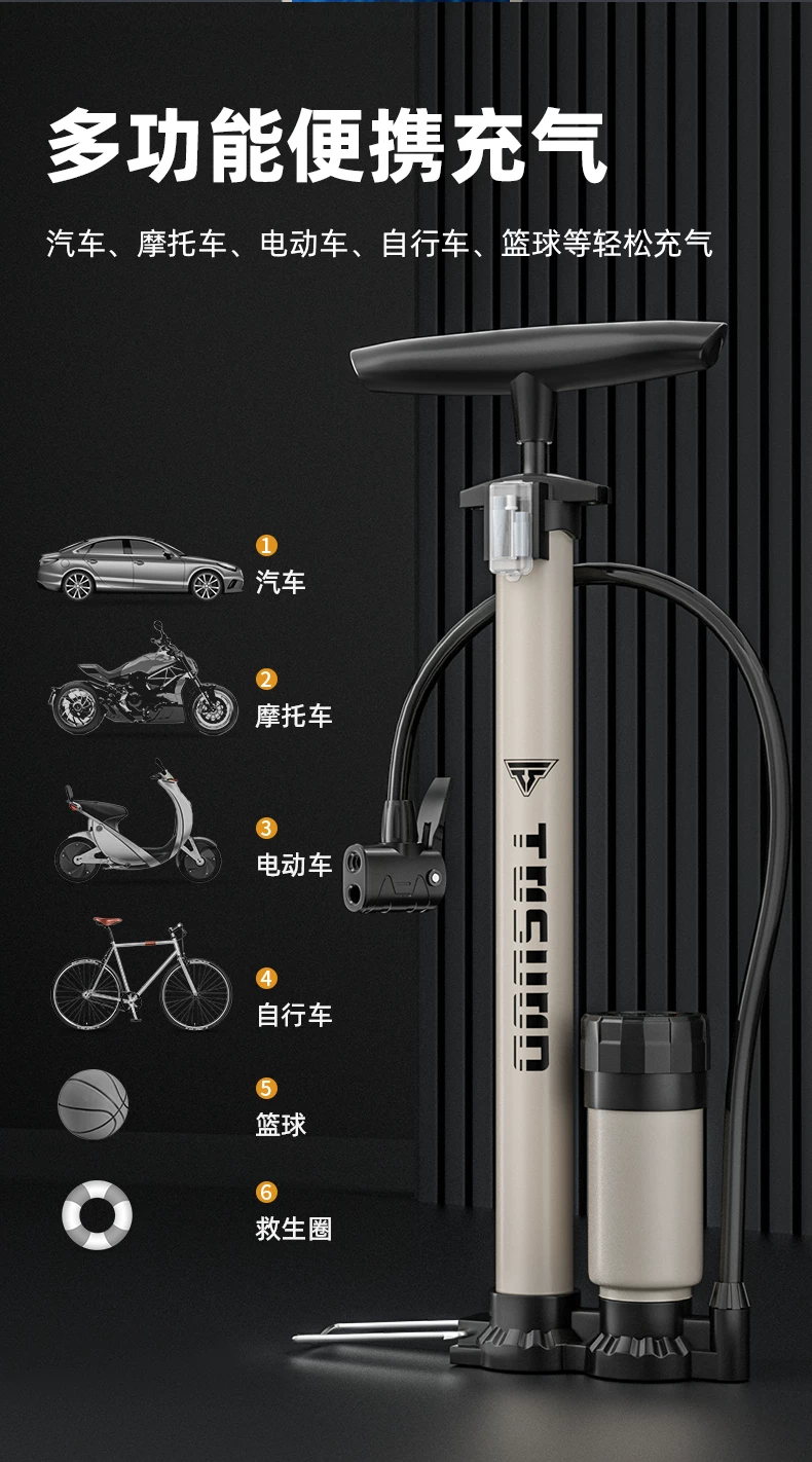 Bơm xe đạp, máy bơm không khí gia dụng, xe điện, ống cao áp bằng thép không gỉ mới, đa năng cho bóng rổ