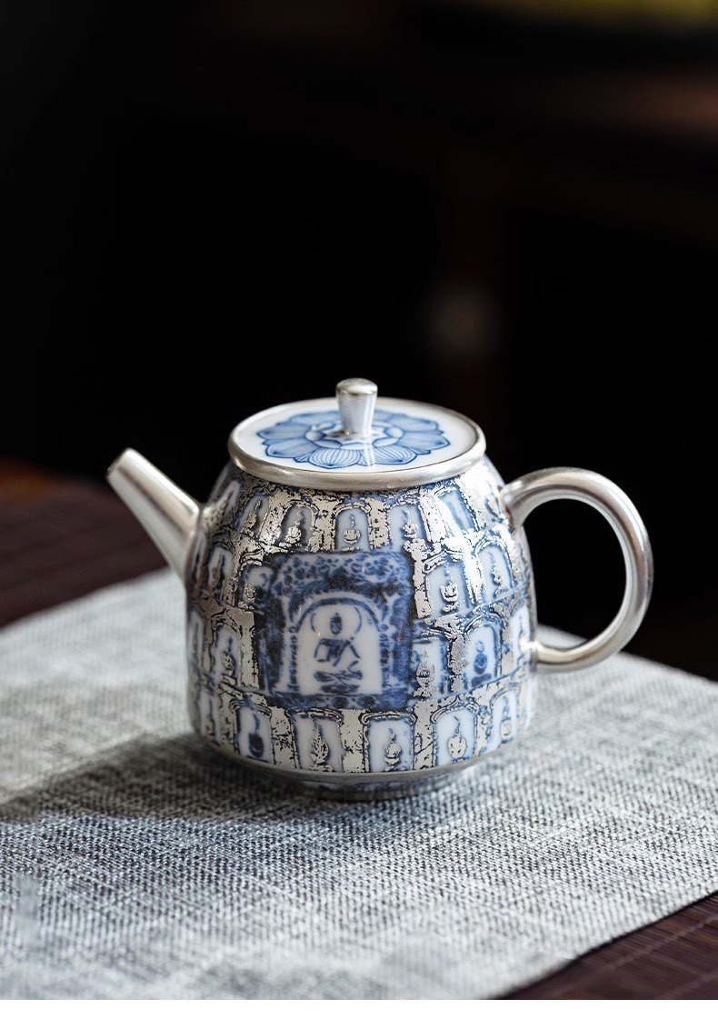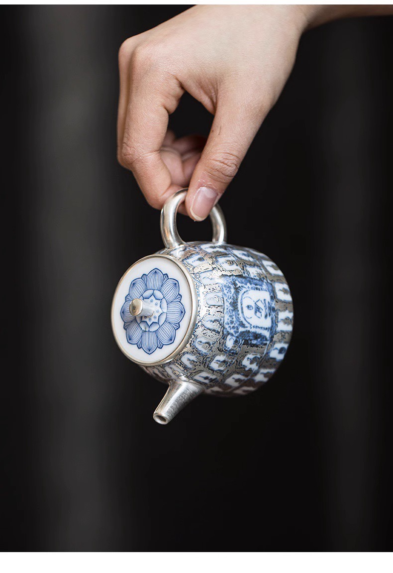 Bong bóng sứ Bộ trà bạc He Fu Sen Ấm trà bạc Jingdezhen Gốm sứ cao cấp làm bằng tay Hộp quà tặng
