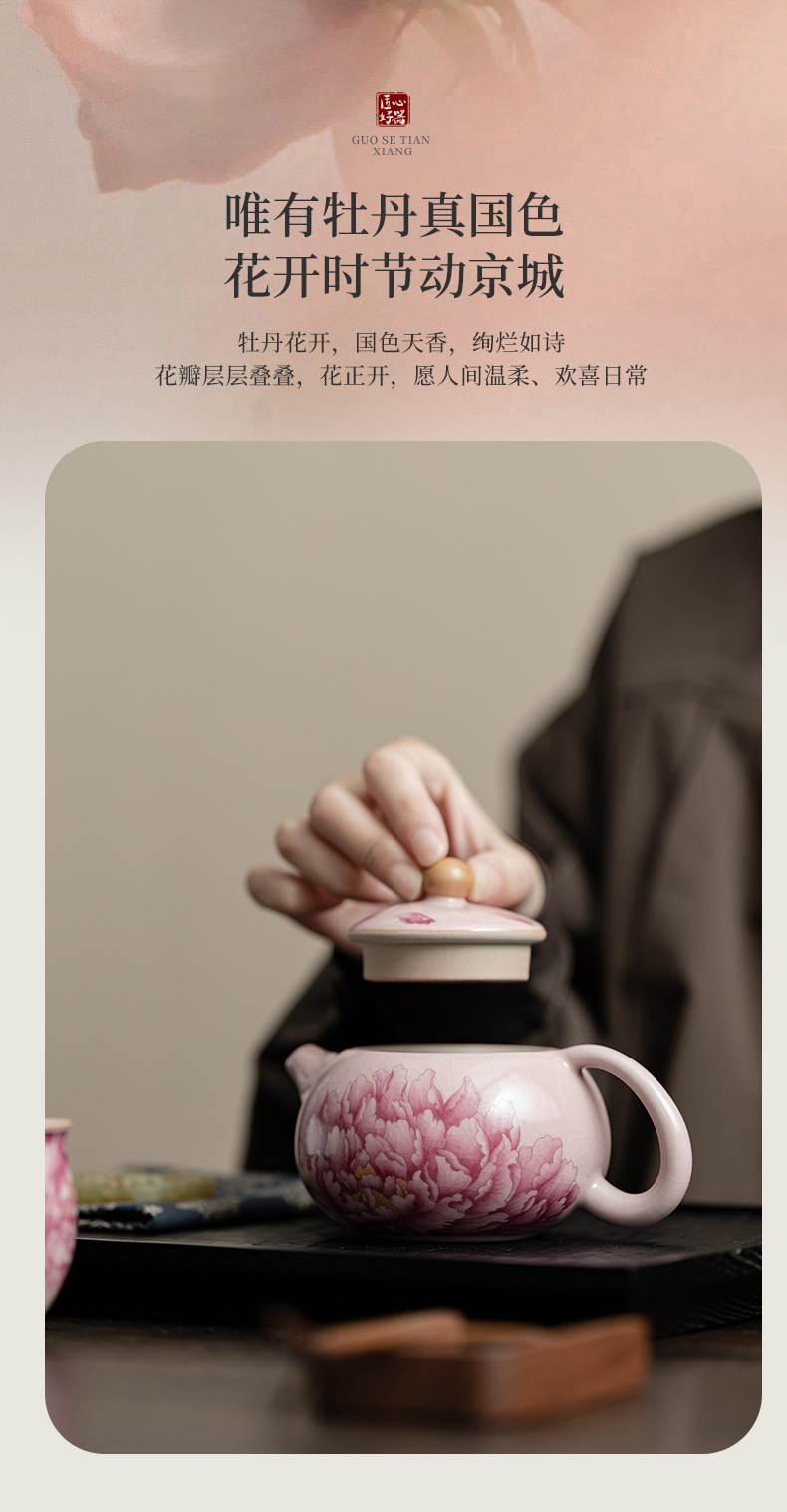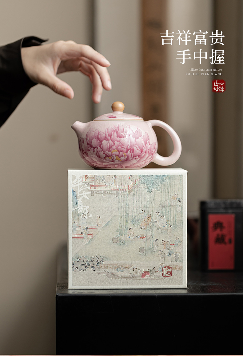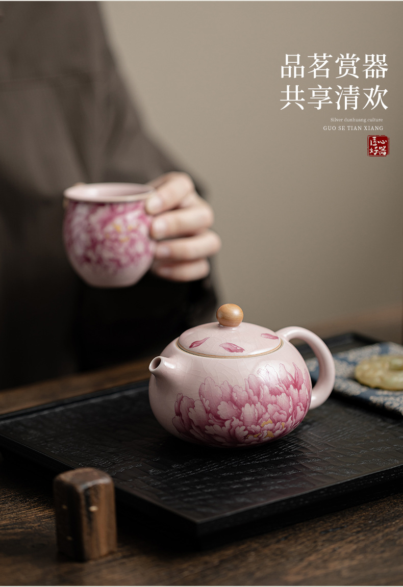 Bột cổ Ru Hoa mẫu đơn Xi Shi Ấm pha trà gốm sứ Ấm lọc mở bộ trà Kung Fu có thể nâng cao hộp quà một ấm