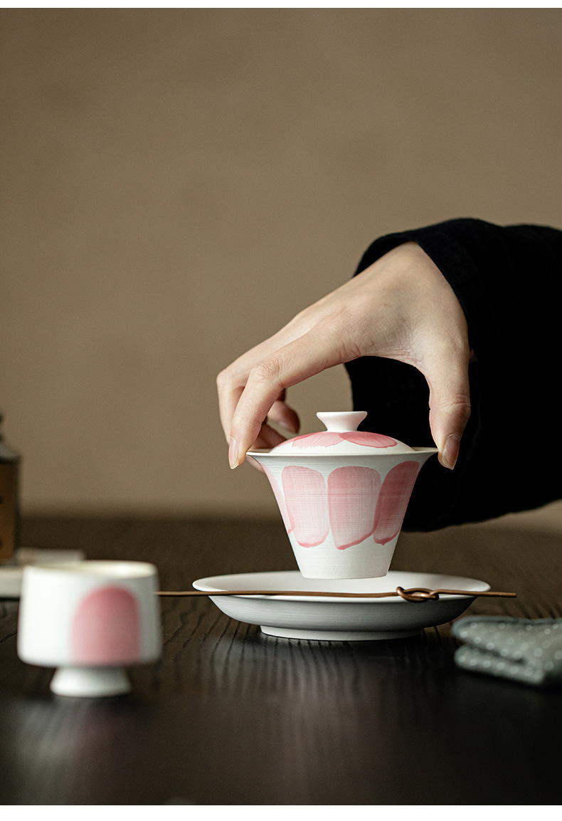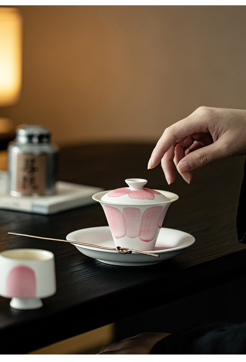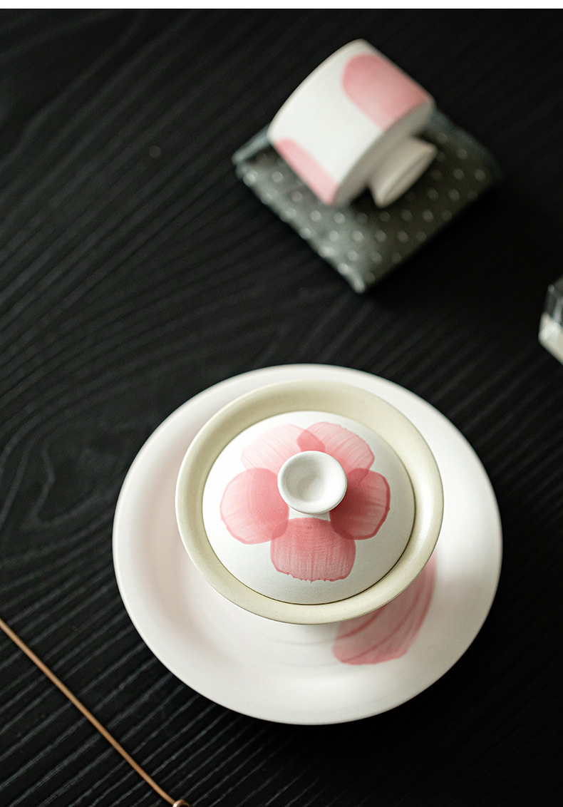 Bột phong cách Nhật Bản, nước trắng, bột, móng ngựa, bát có nắp thứ hai bằng gốm sứ, bát trà cỡ lớn, tách trà, trang nhã và thanh lịch