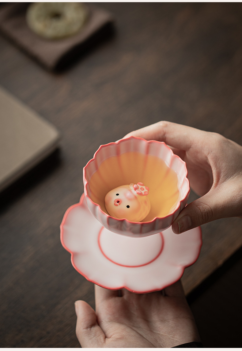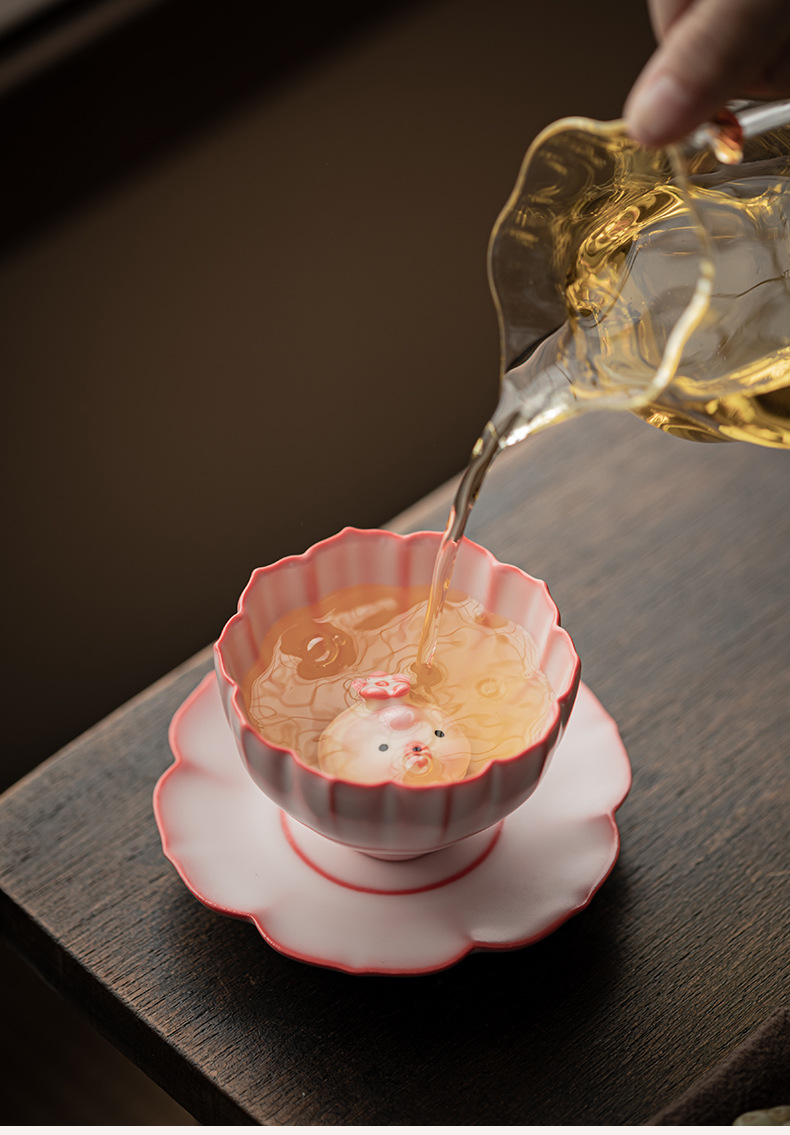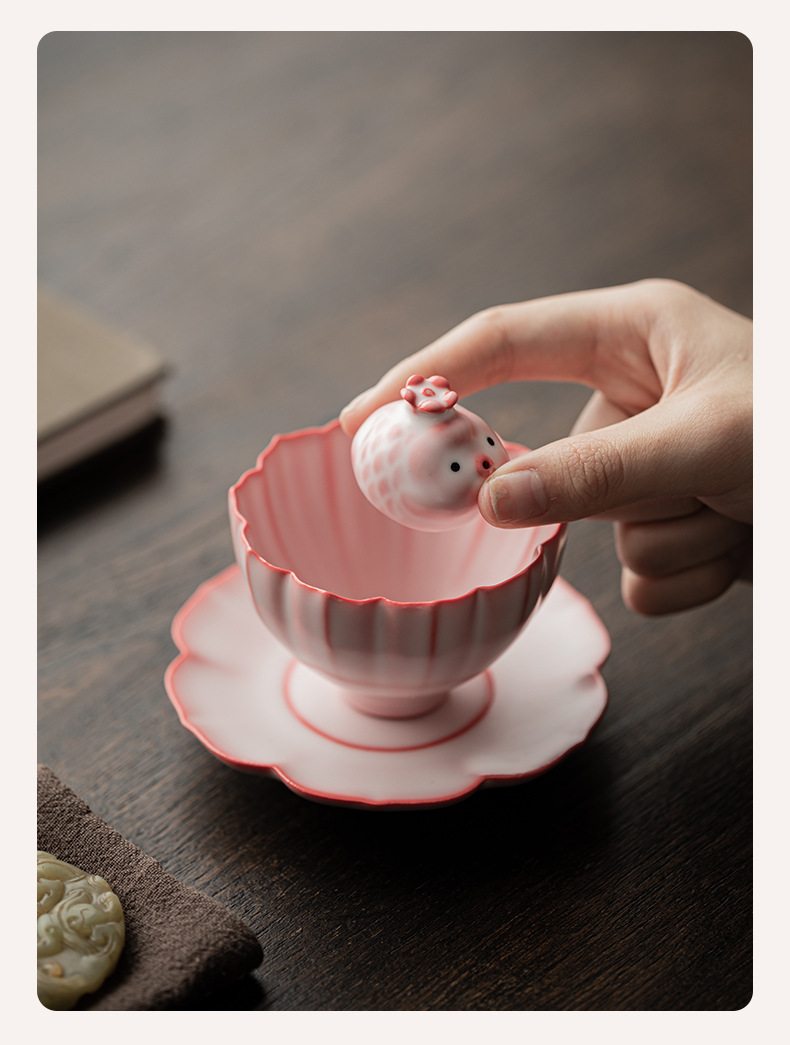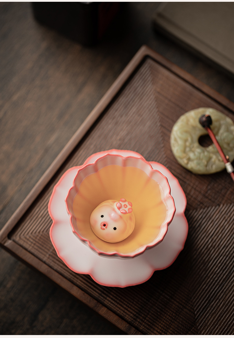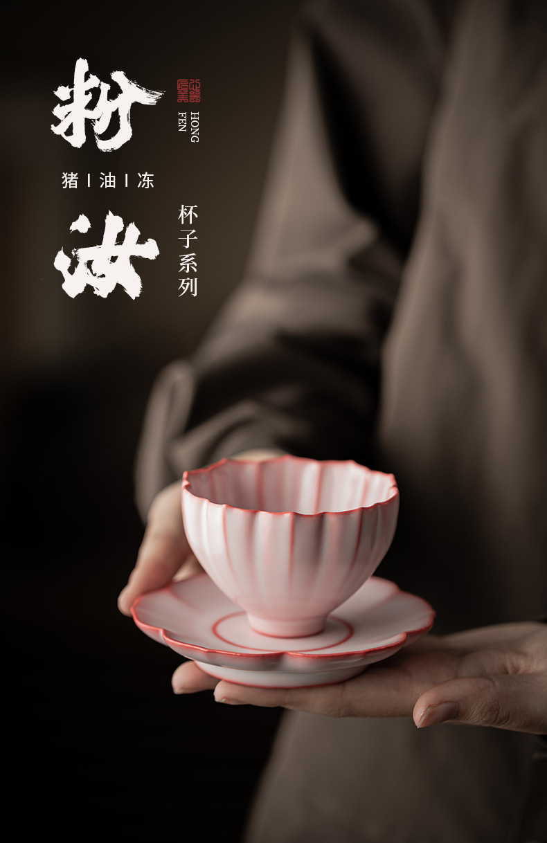 - Bột thạch mỡ lợn Cốc cánh hoa Ru Kiln Cốc trà gốm sứ có thể mở được Cốc chủ nhân Cốc trà gia dụng Cốc đơn Cốc trà