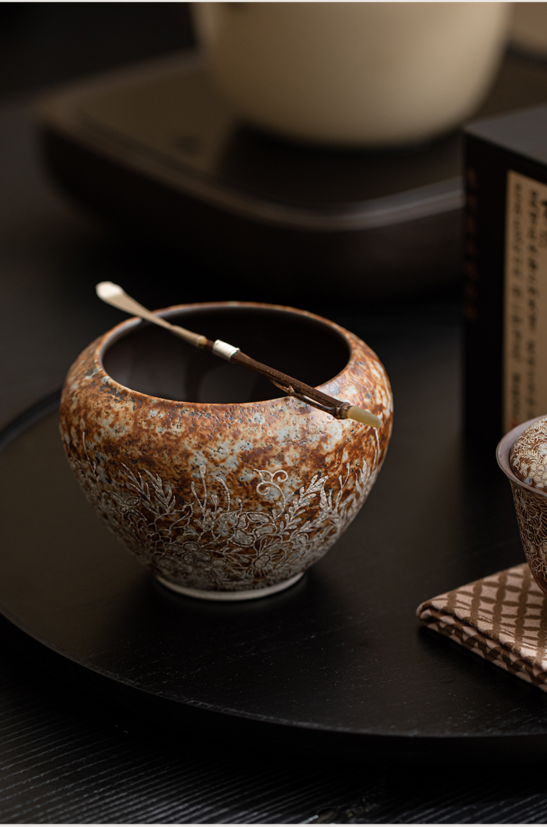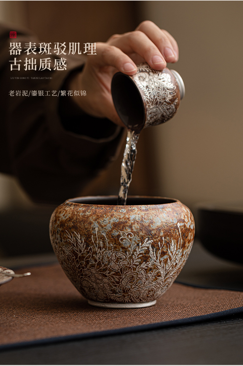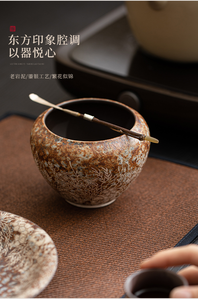 - Bùn đá cũ, hoa mạ bạc Jianshui, trà đạo Kung Fu gia đình, bể chứa nước thải trà, bể chứa nước, rửa cốc