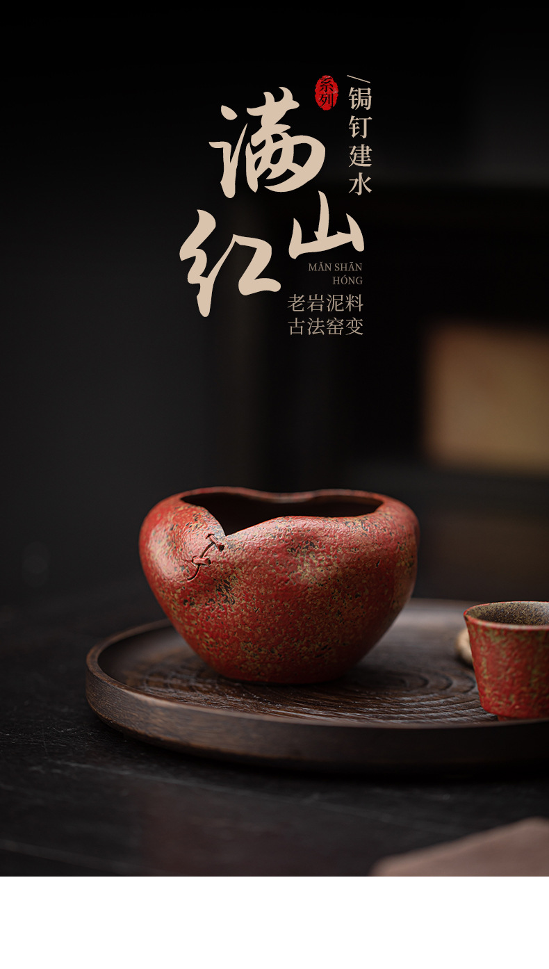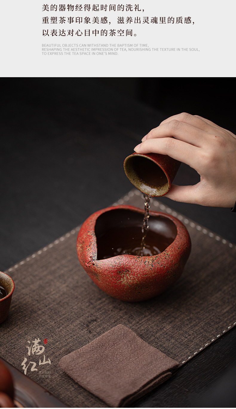 Bùn đá cũ, núi đỏ, móng tay, lò nung Jianshui, gốm thô, rửa cốc, rửa cốc, thùng xỉ trà, phụ kiện bộ trà, thùng nước thải trà