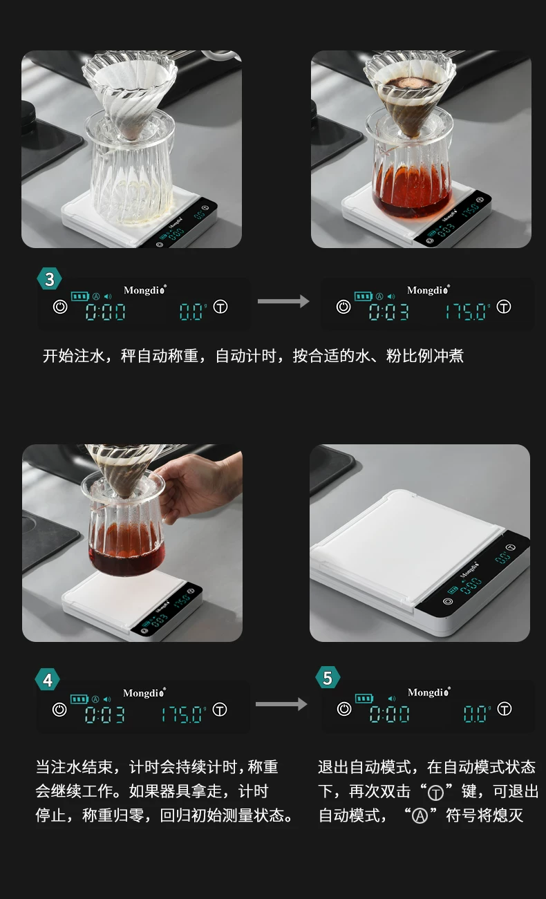Cân điện tử cà phê Mongdio, cân cà phê, cân điện tử đặc biệt dành cho cà phê, cân hạt cà phê, cân hẹn giờ pha cà phê thủ công