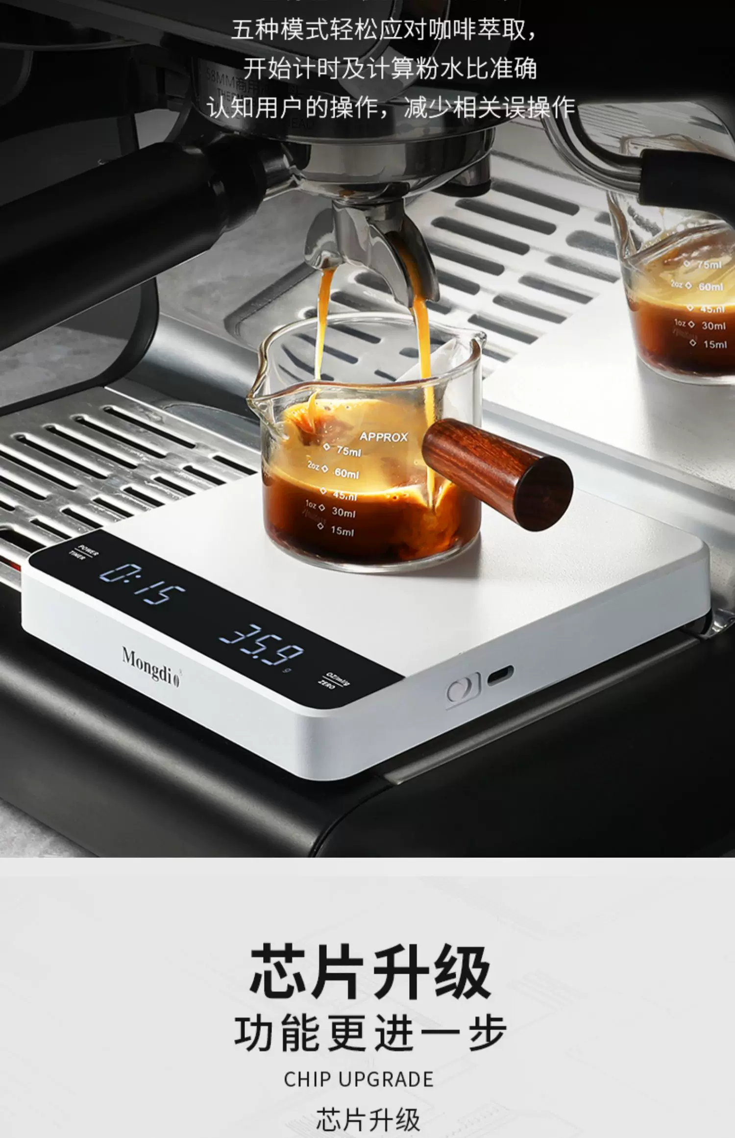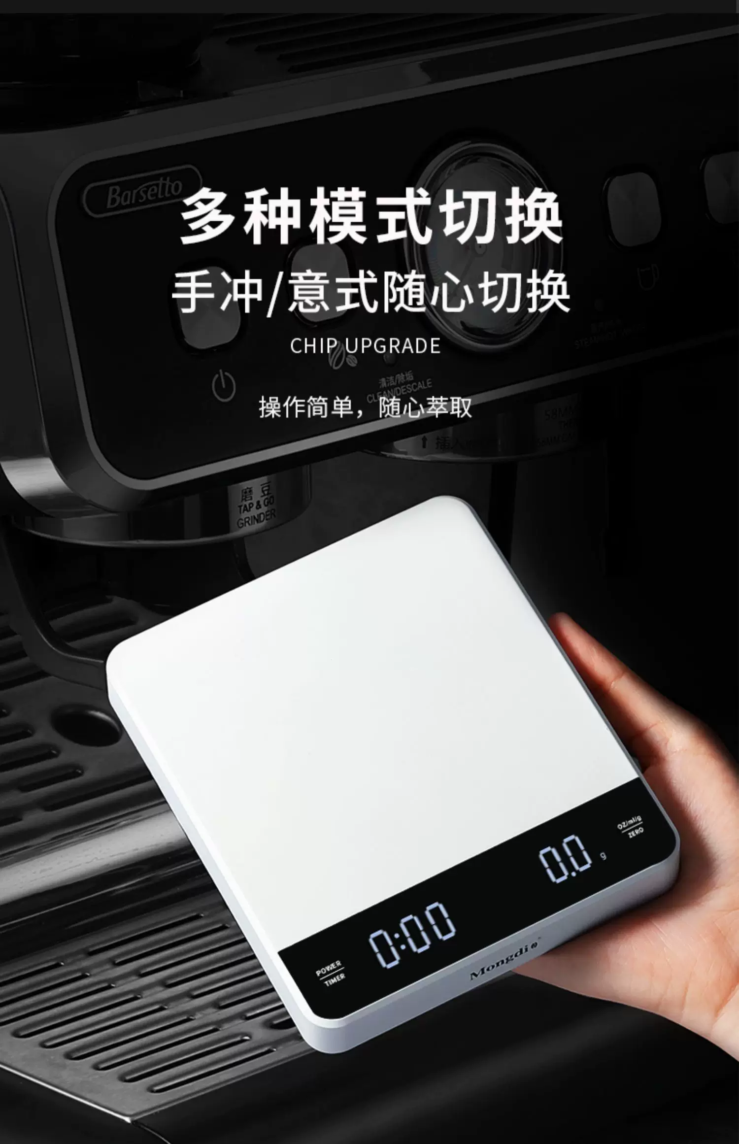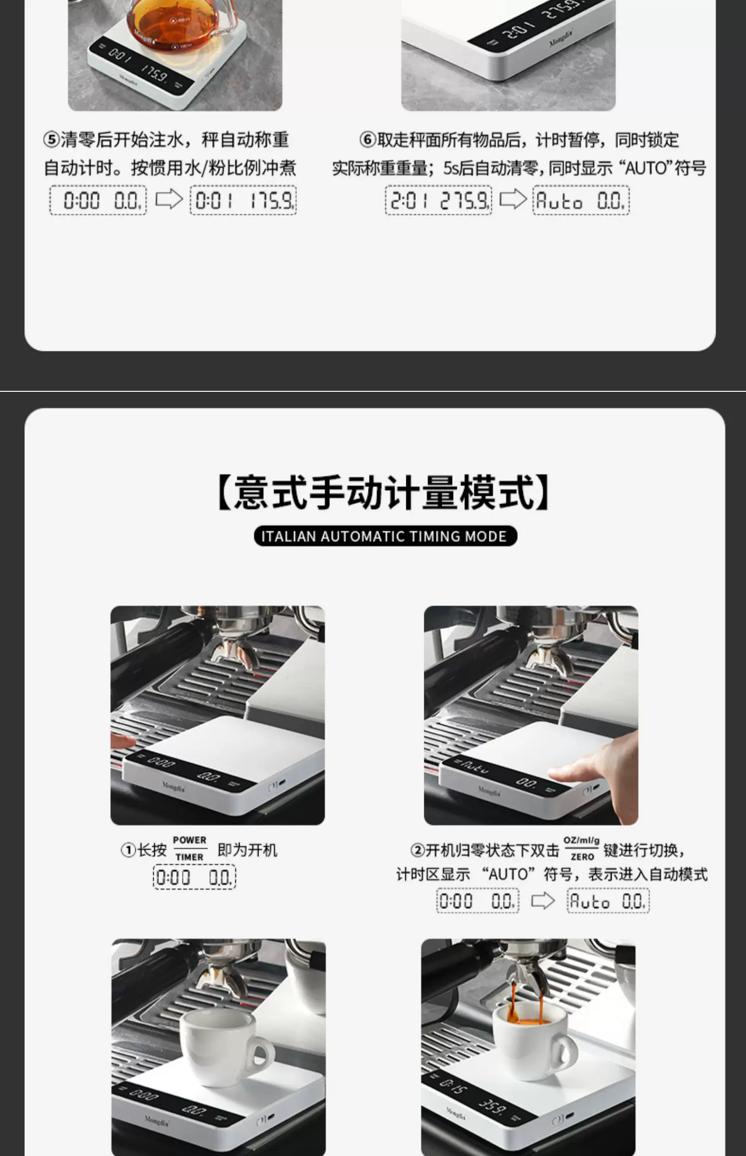 Cân điện tử cà phê Mongdio, cân cà phê để pha cà phê thủ công, cân điện tử cho hạt cà phê, cân hẹn giờ chuyên dụng kiểu Ý.