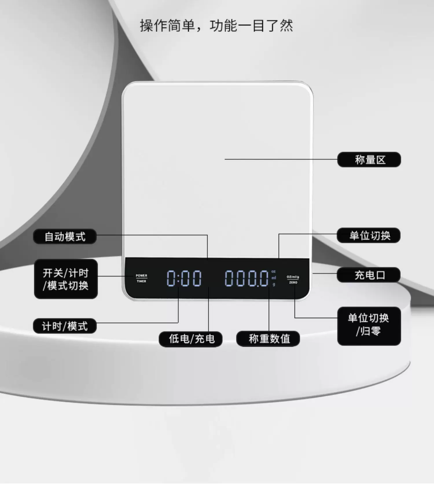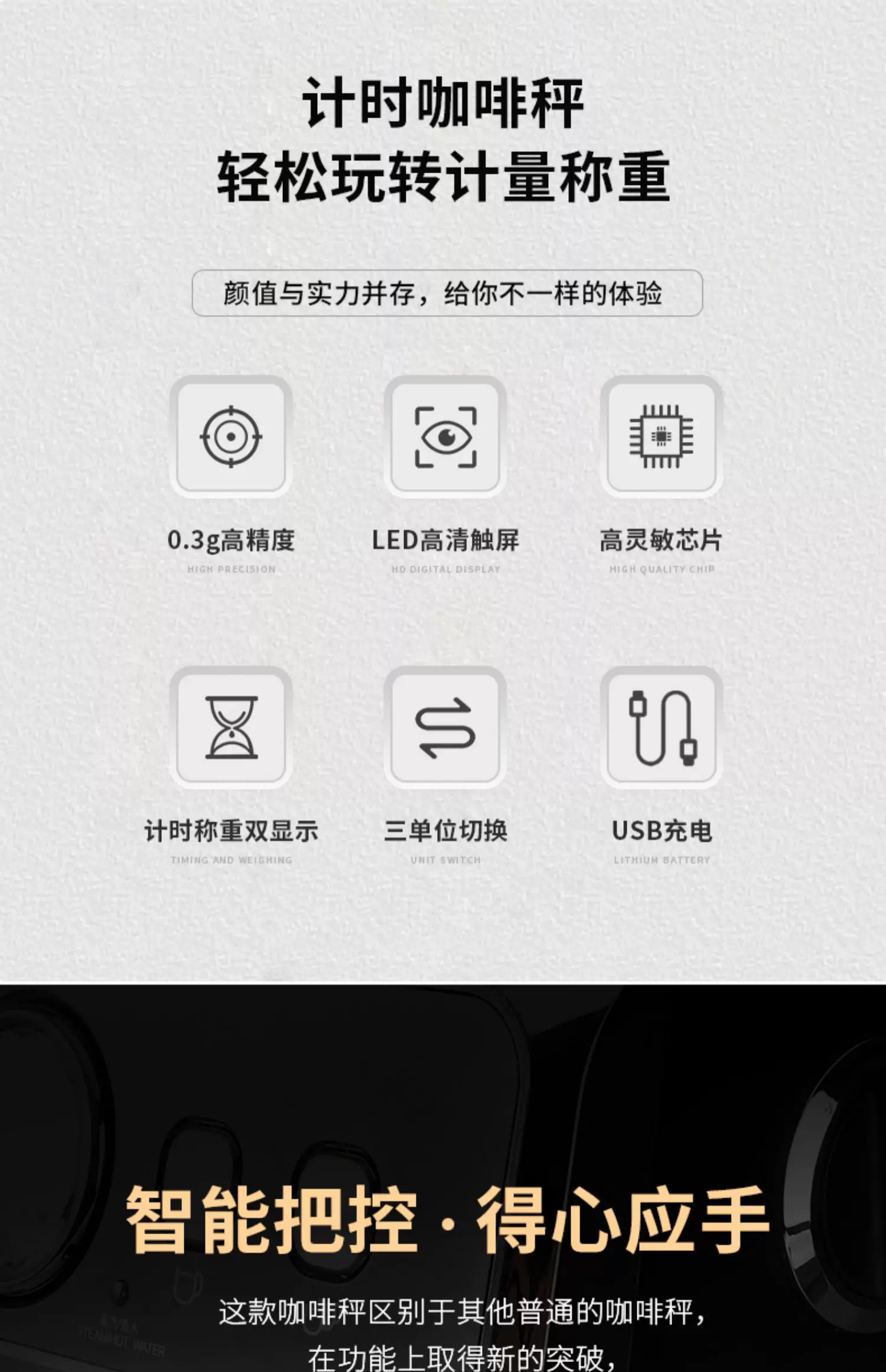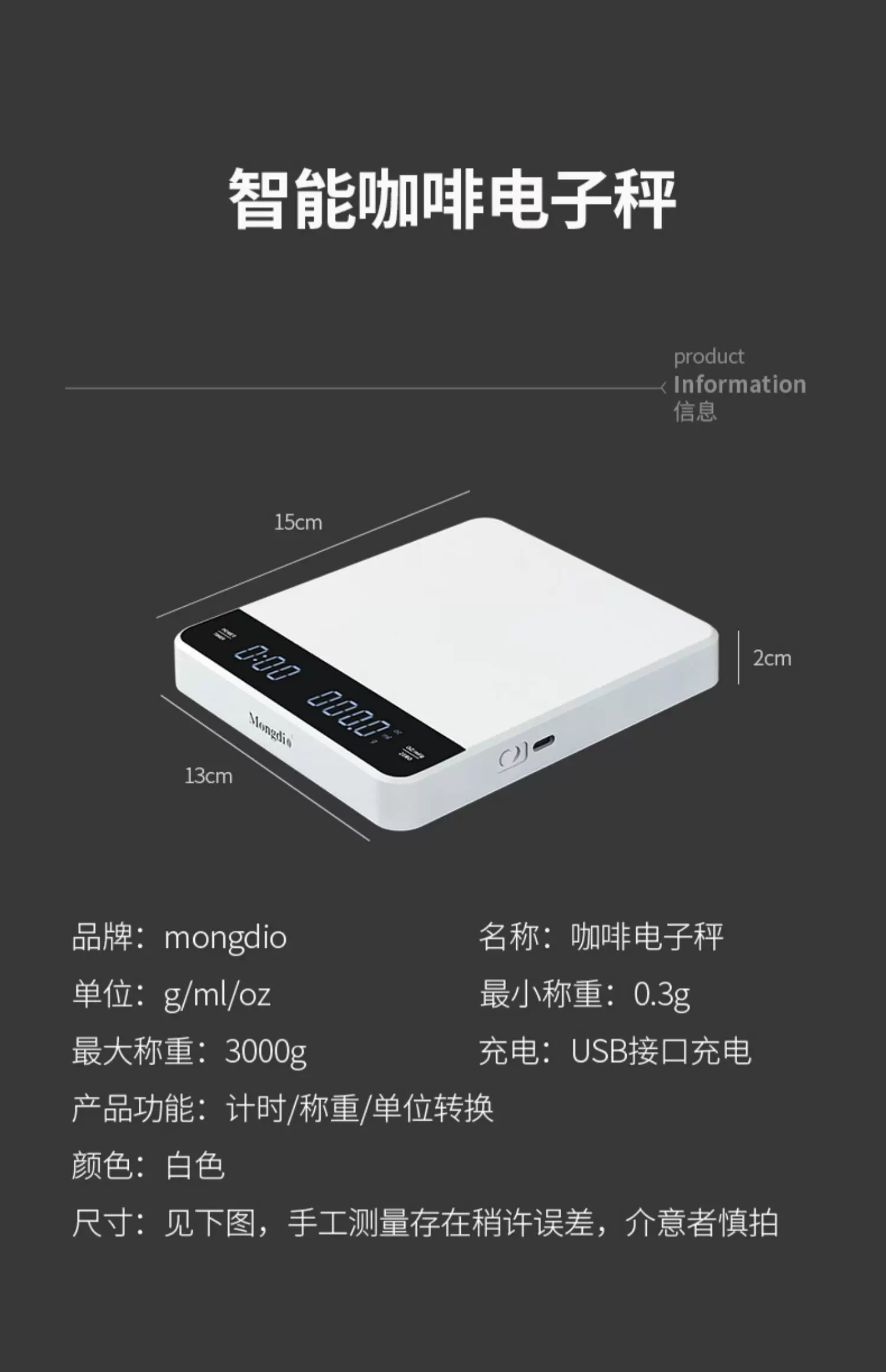 Cân điện tử cà phê Mongdio, cân cà phê để pha cà phê thủ công, cân điện tử cho hạt cà phê, cân hẹn giờ chuyên dụng kiểu Ý.