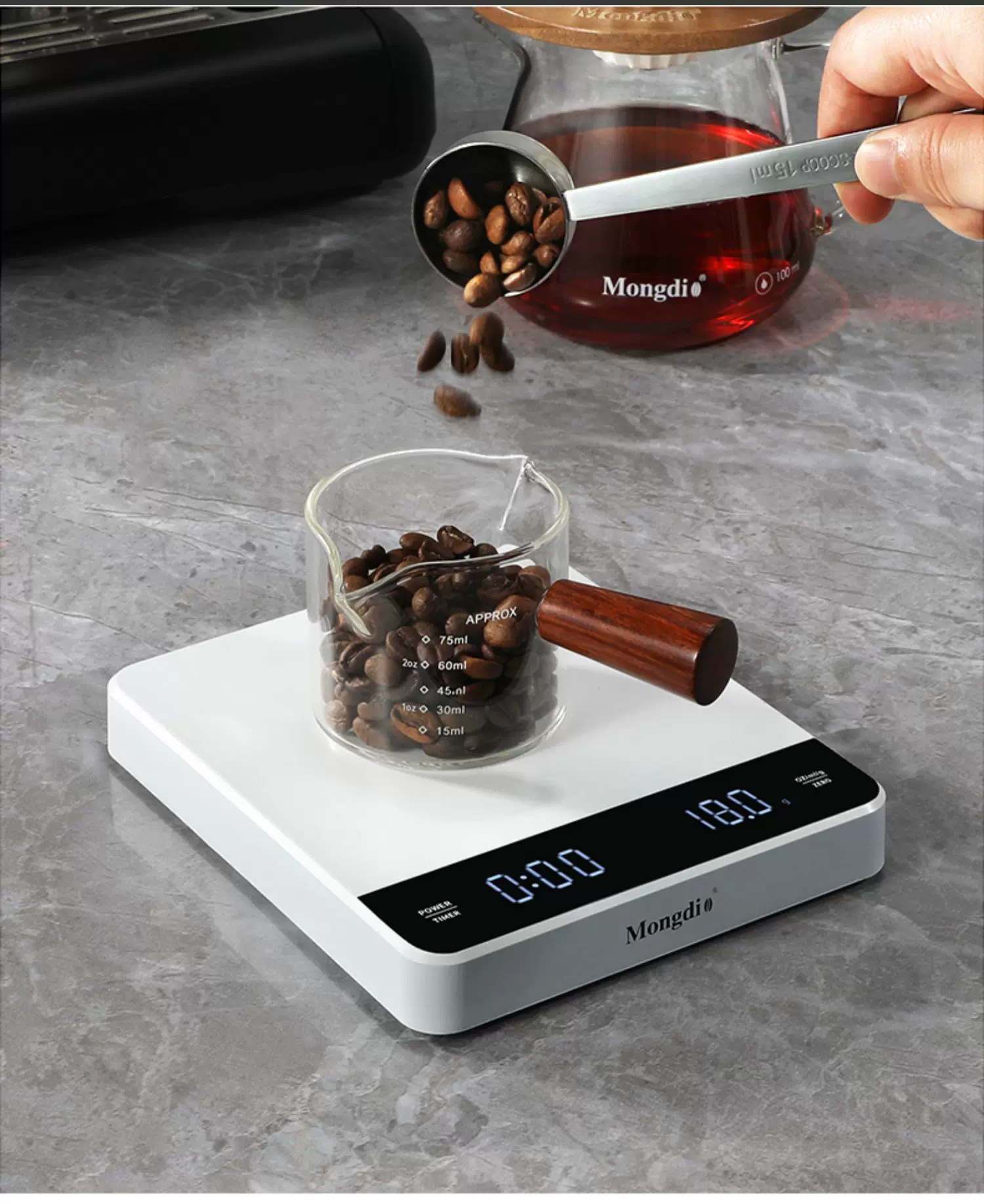 - Cân điện tử cà phê Mongdio, cân cà phê để pha cà phê thủ công, cân điện tử cho hạt cà phê, cân hẹn giờ chuyên dụng kiểu Ý.