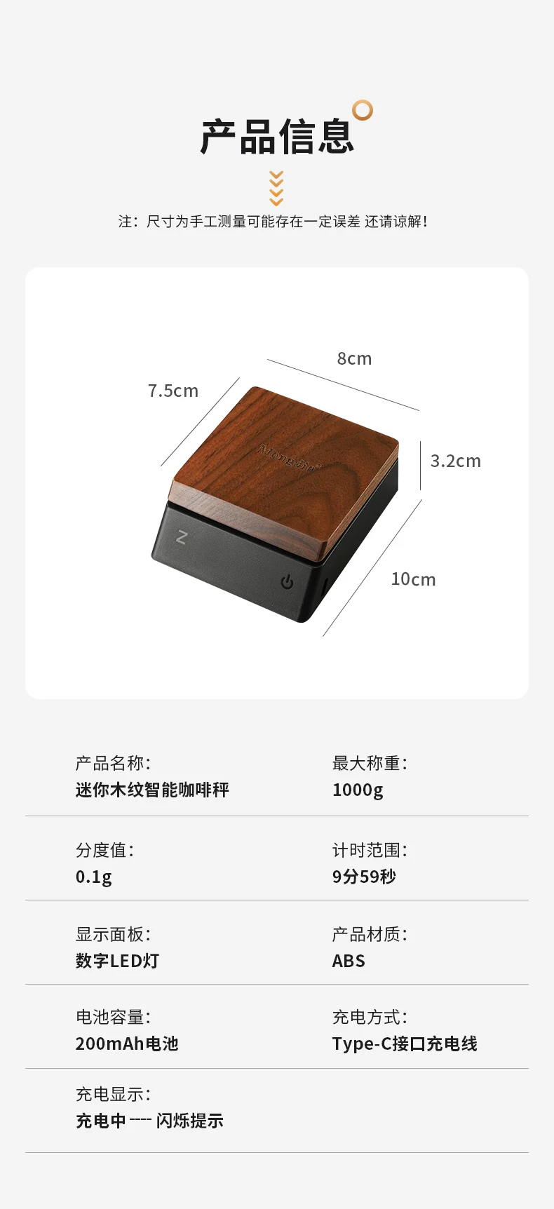 - Cân điện tử cà phê Mongdio, cân hạt cà phê, cân điện tử đặc biệt dành cho pha cà phê thủ công kiểu Ý, thiết bị hẹn giờ mini cầm tay