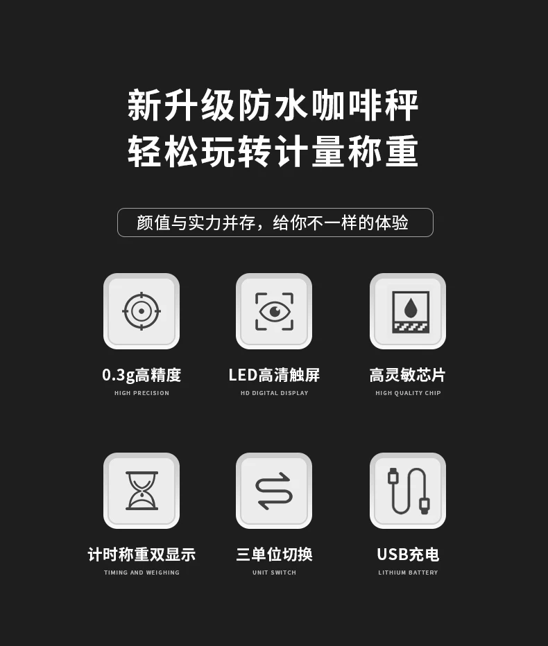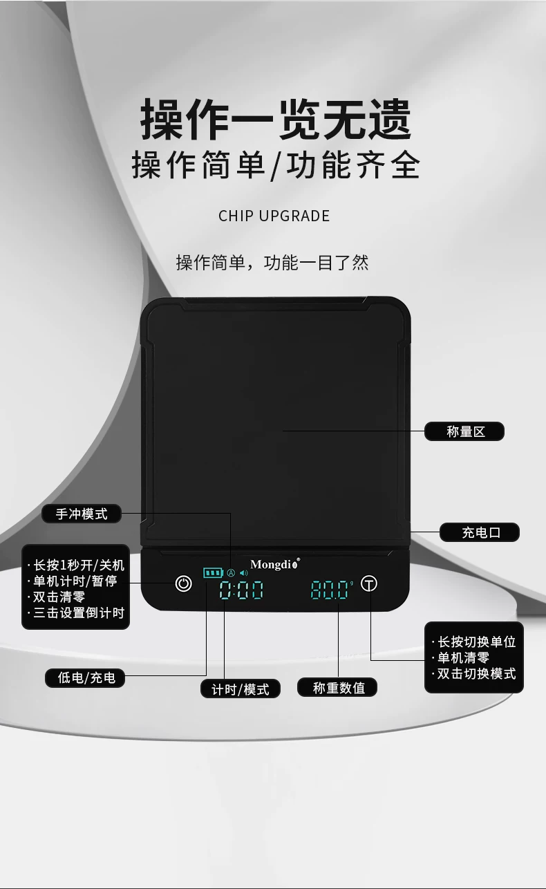 Cân điện tử cà phê Mongdio chống nước pha cà phê espresso bằng tay cân thông minh cân hẹn giờ cân điện tử cân nhà bếp