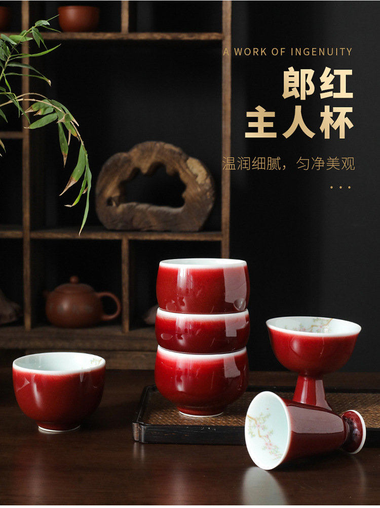 Cảnh Đức Trấn Lang tách trà đen handmade Jun lò gốm kung fu bộ trà cá tính Ji đỏ đơn chủ cốc vẽ tay