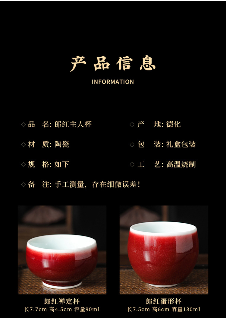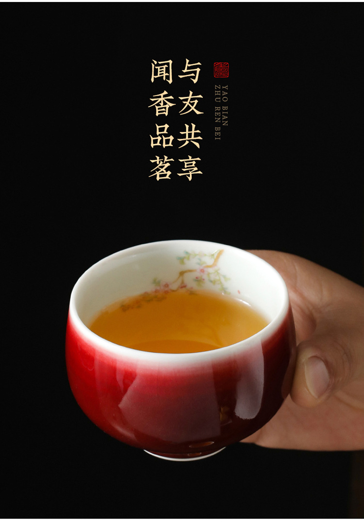 - Cảnh Đức Trấn Lang tách trà đen handmade Jun lò gốm kung fu bộ trà cá tính Ji đỏ đơn chủ cốc vẽ tay