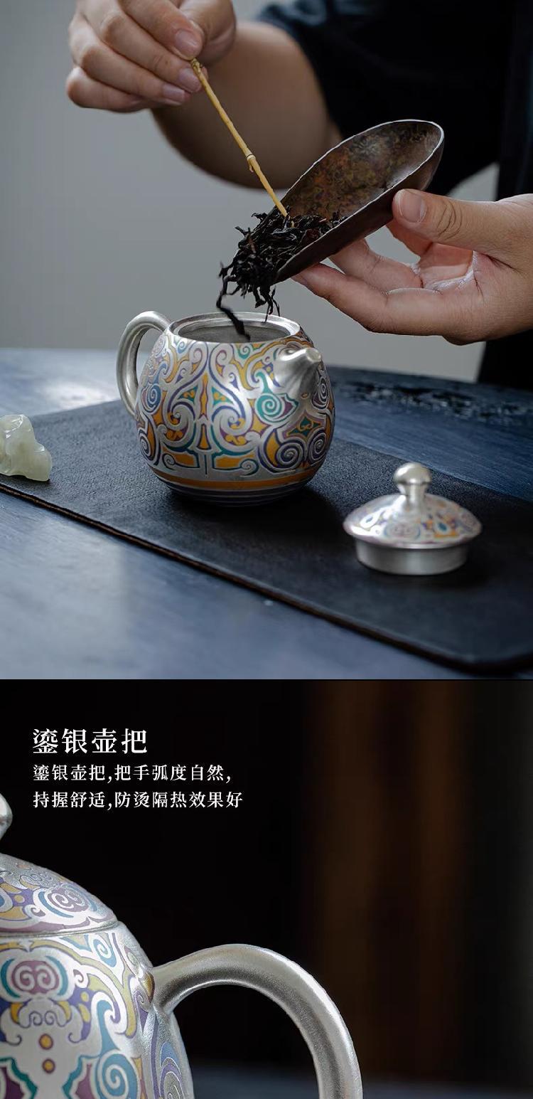 - Cao cấp bạc Gongfu He Fusen Master Handmade Xi Shi Ấm trà 999 sterling bạc mạ bạc Ấm trà thời Xuân Thu Chiến Quốc Phượng hoàng