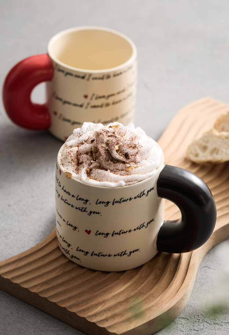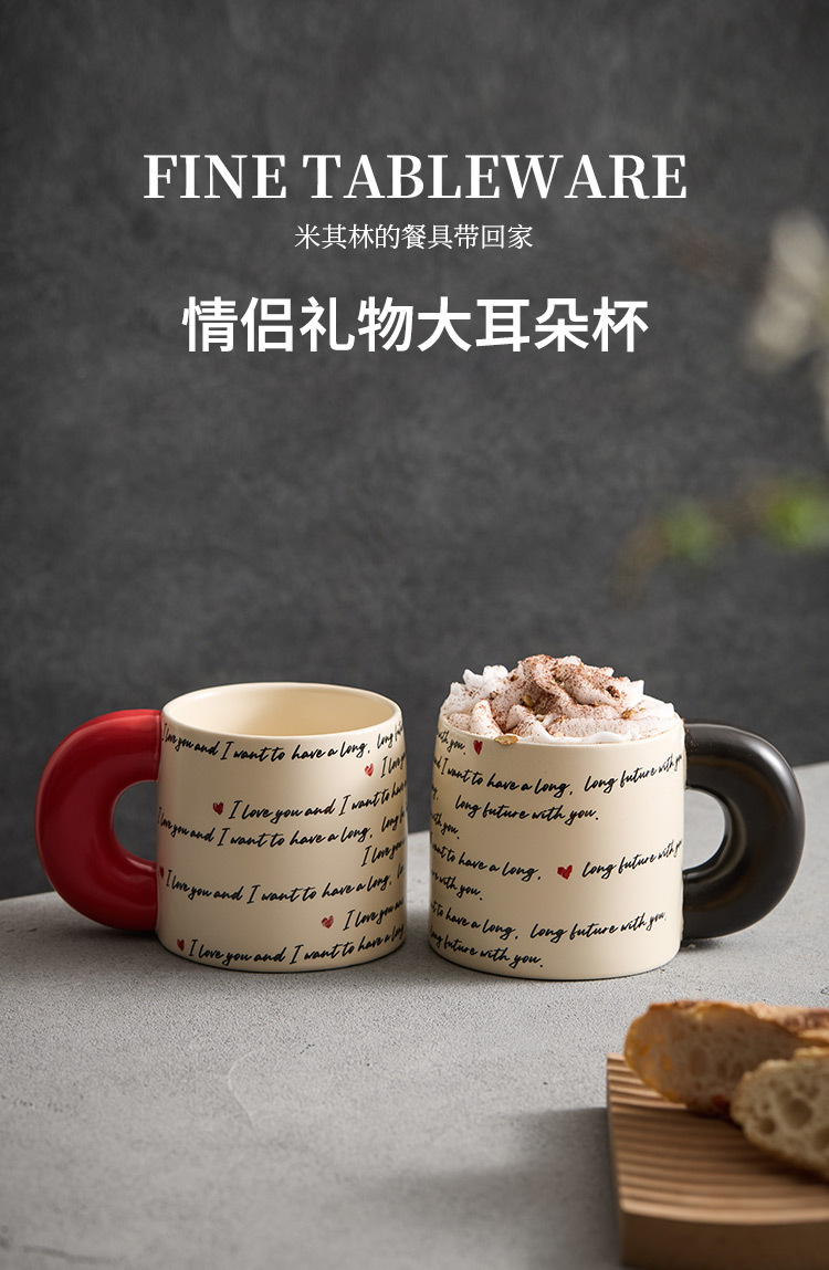 Cặp đôi tai lớn cốc gốm sứ văn phòng tại nhà cốc cao cấp sáng tạo tiếng Anh cốc nước latte nghệ thuật cốc cà phê