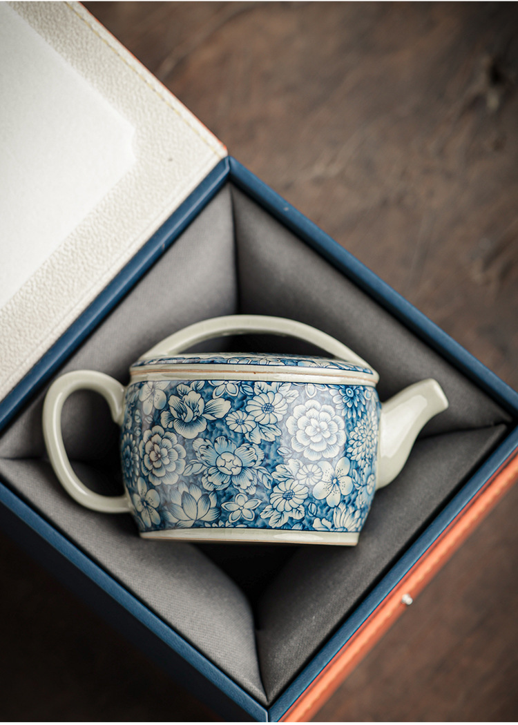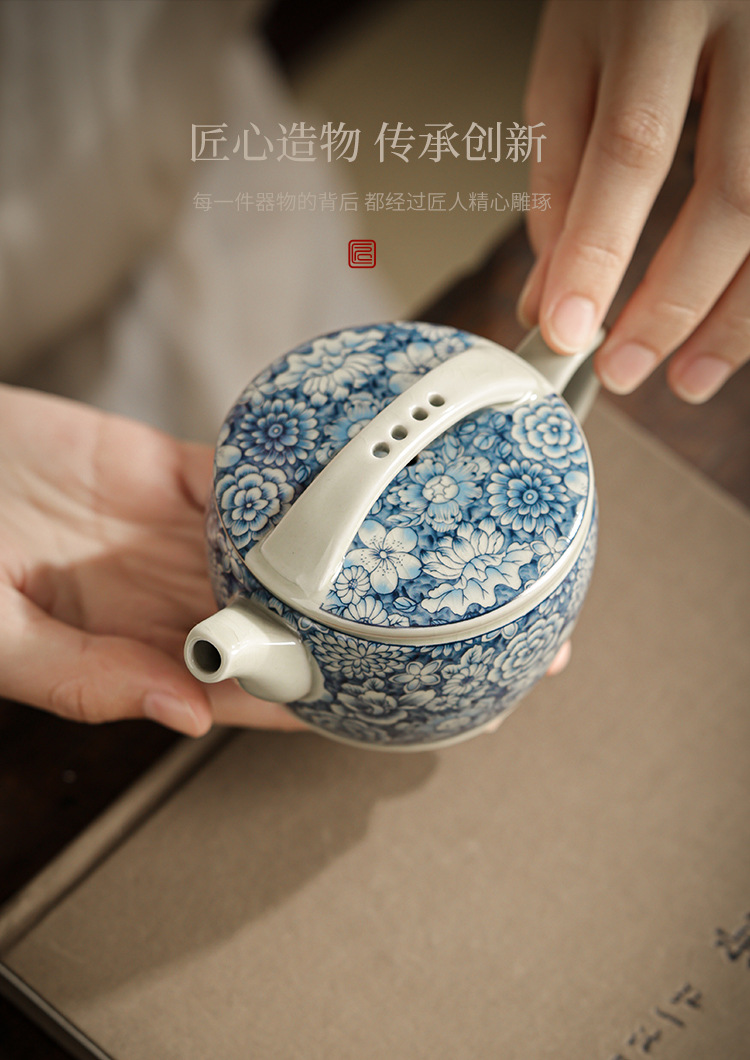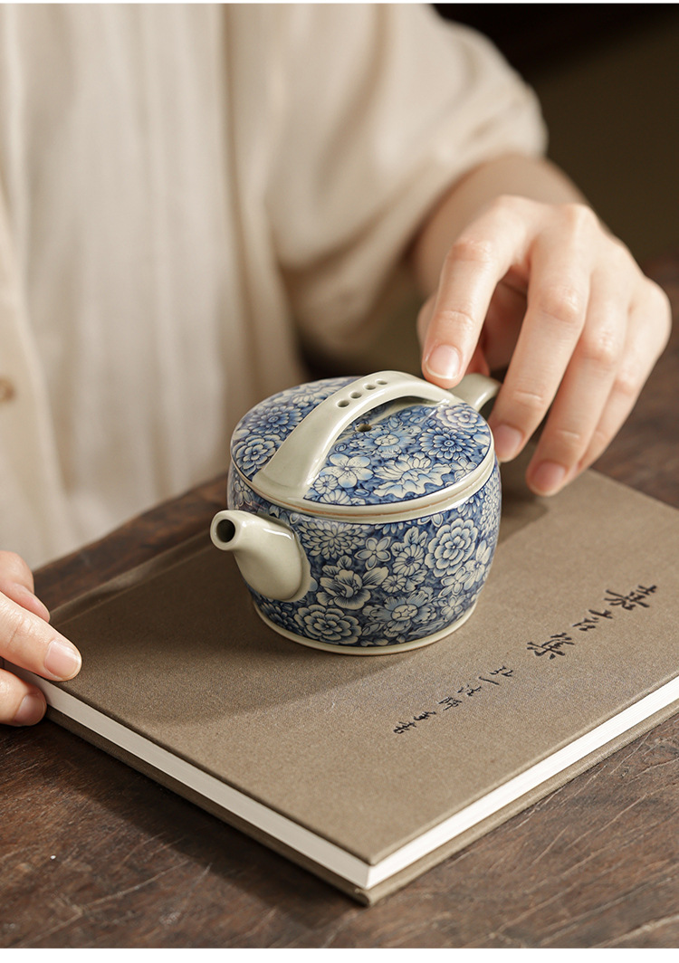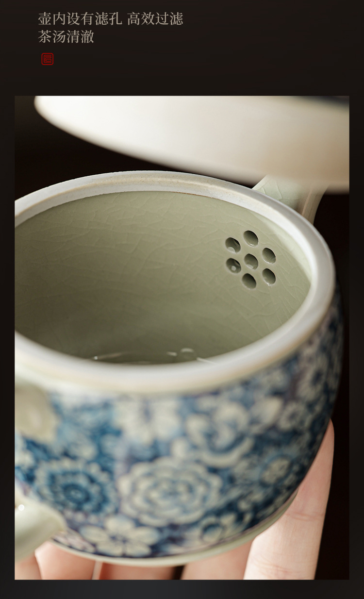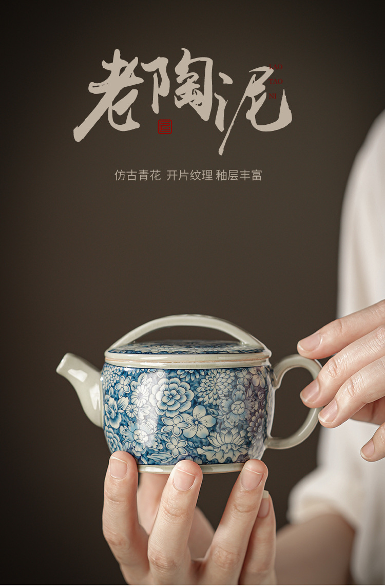 Câu chuyện đất sét Ấm trà Hanwa màu xanh và trắng gốm sứ gia dụng dụng phụ kiện ấm trà có thể nâng ấm trà