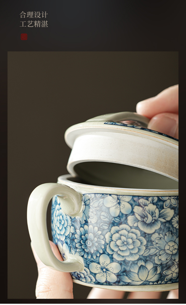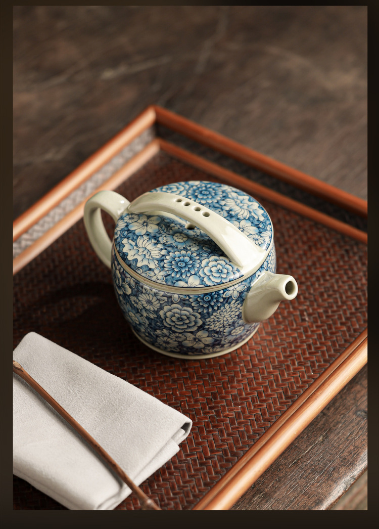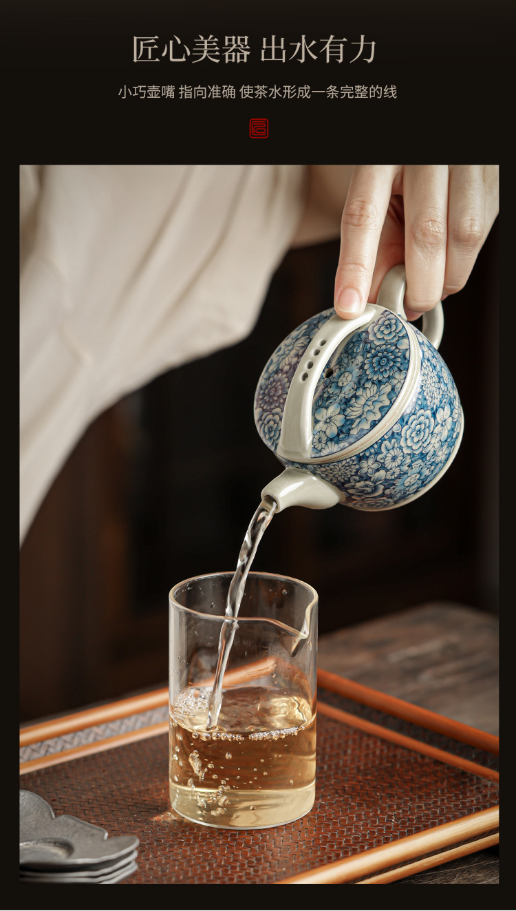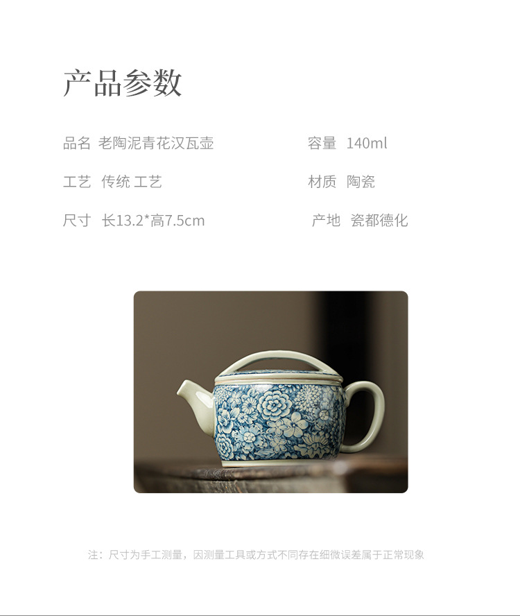 - Câu chuyện đất sét Ấm trà Hanwa màu xanh và trắng gốm sứ gia dụng dụng phụ kiện ấm trà có thể nâng ấm trà