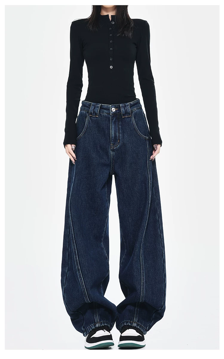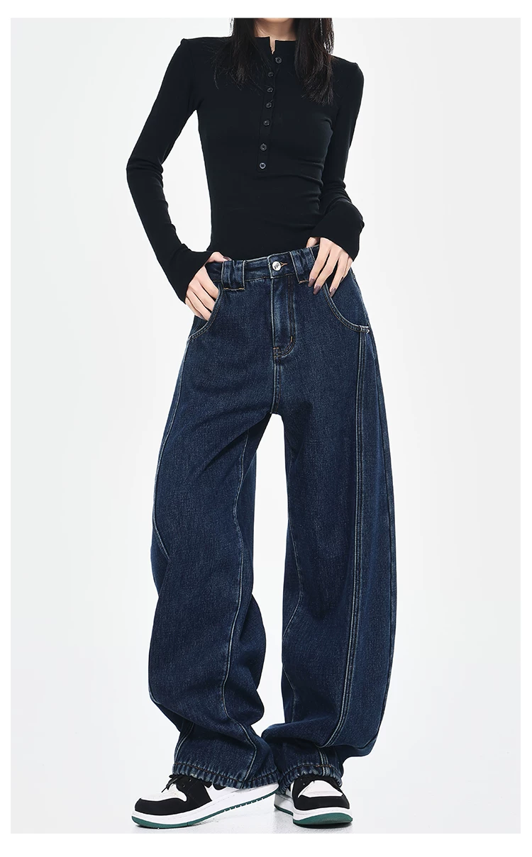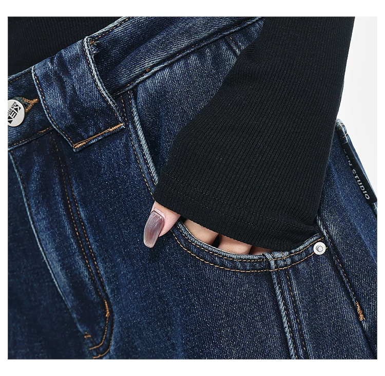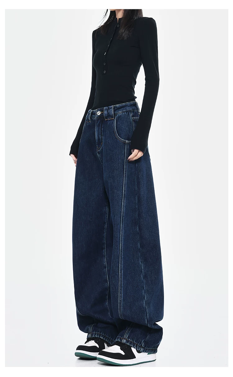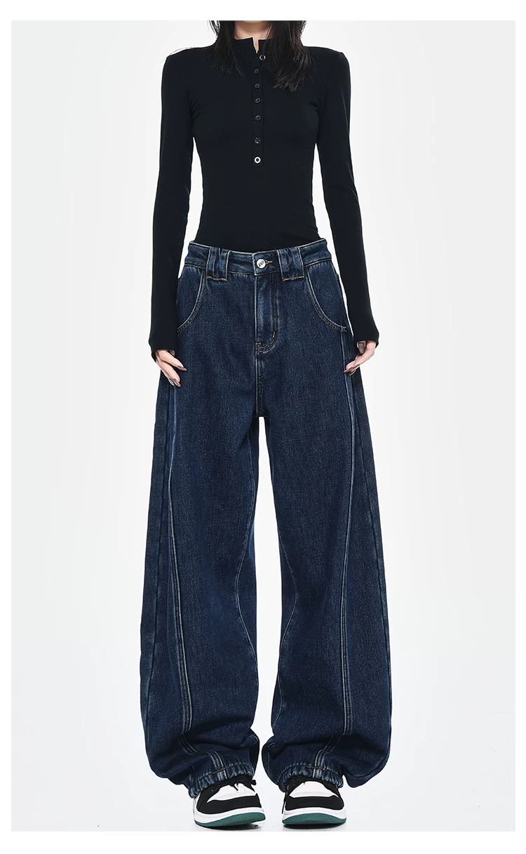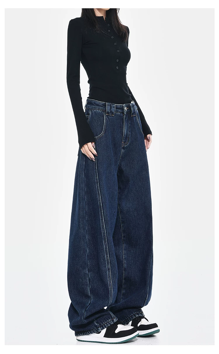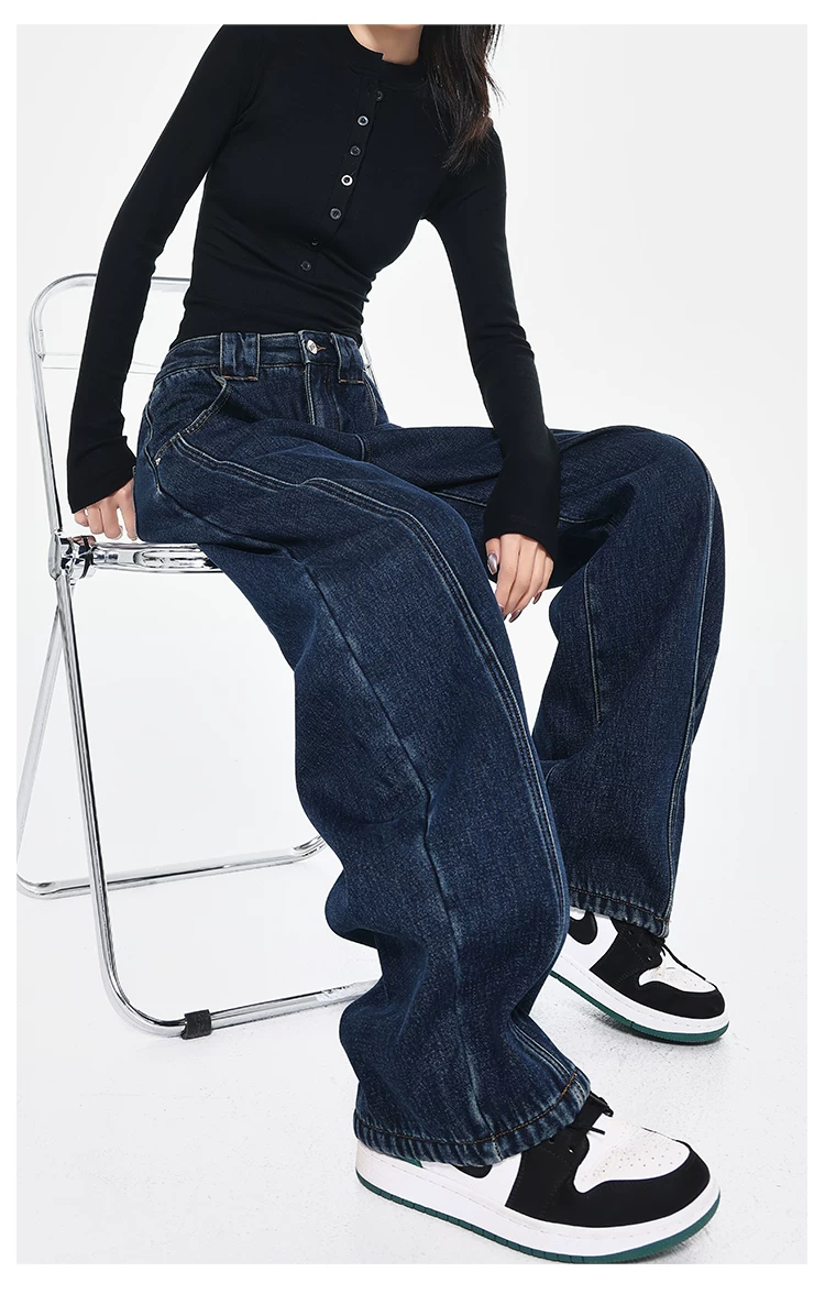 - [Câu lạc bộ Bee Surprise] KEN STUDIO Thu/Đông Quần denim ống rộng kiểu dáng cổ điển mới được làm sạch kiểu cổ điển