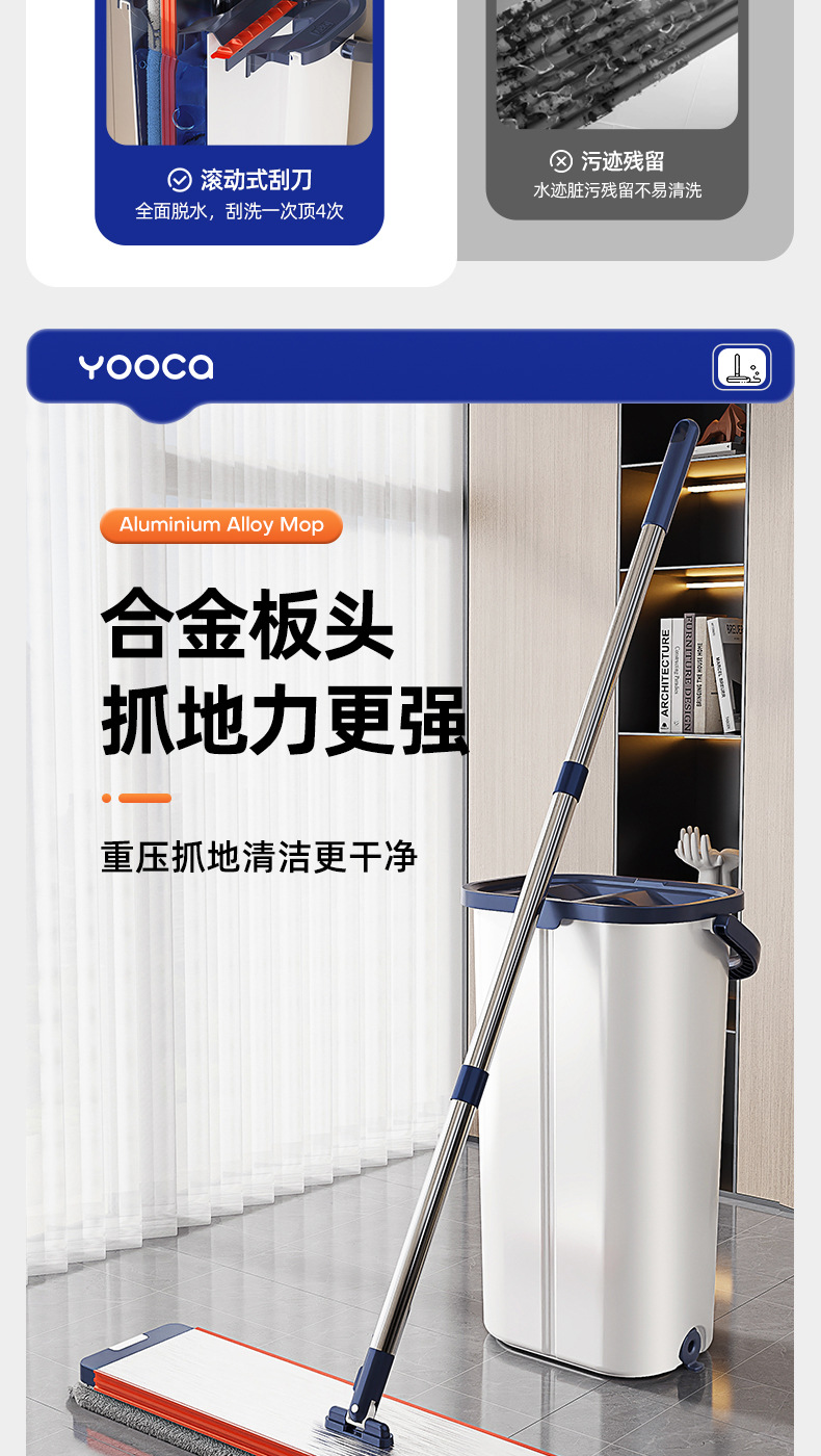 - Cây lau nhà phẳng không giặt tay Yooca đồ dùng lau nhà lau nhà cho người lười mẫu mới 2024