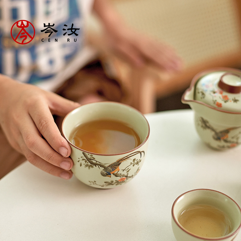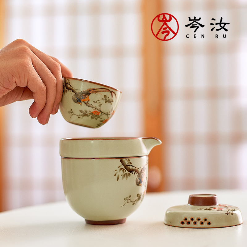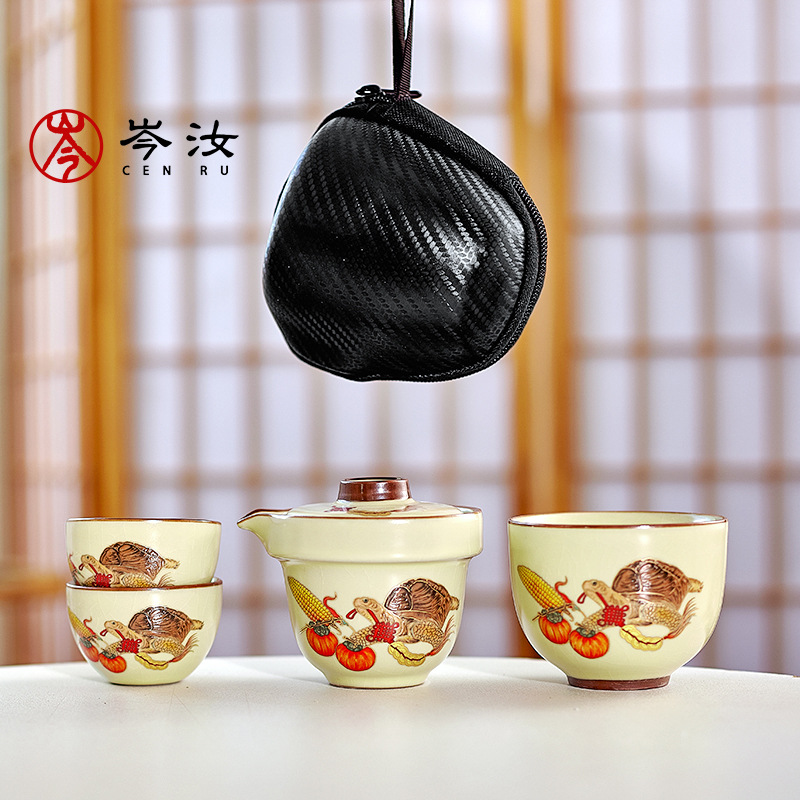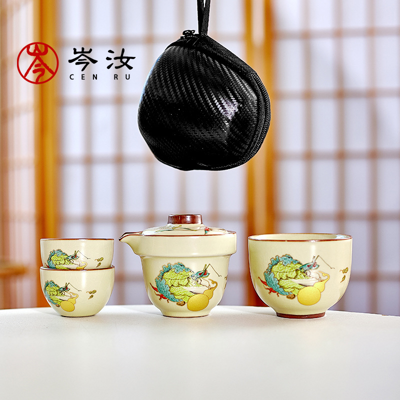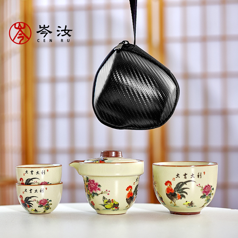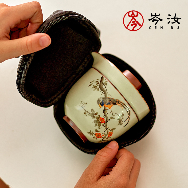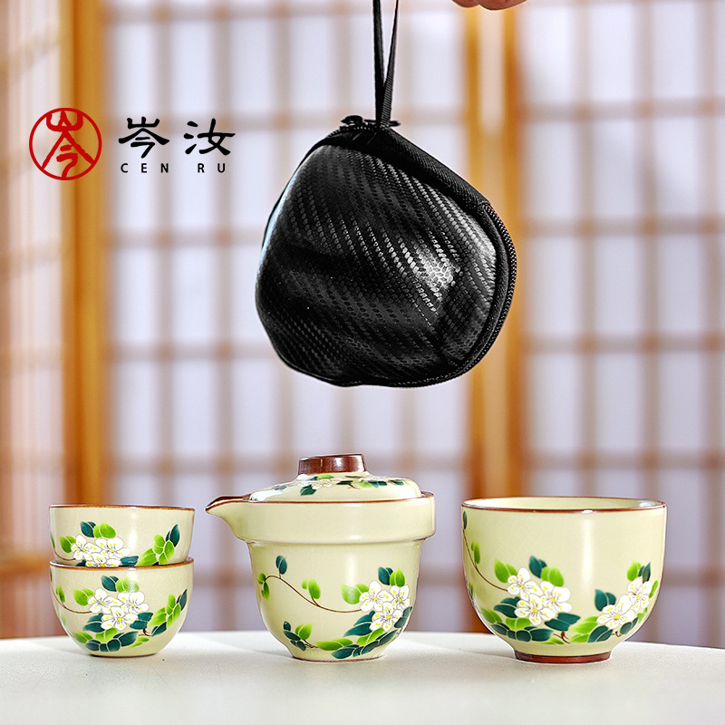 - Cen Ruru lò một ấm ba cốc bộ trà du lịch ngoài trời ly nhanh tiện lợi gốm sứ cao cấp