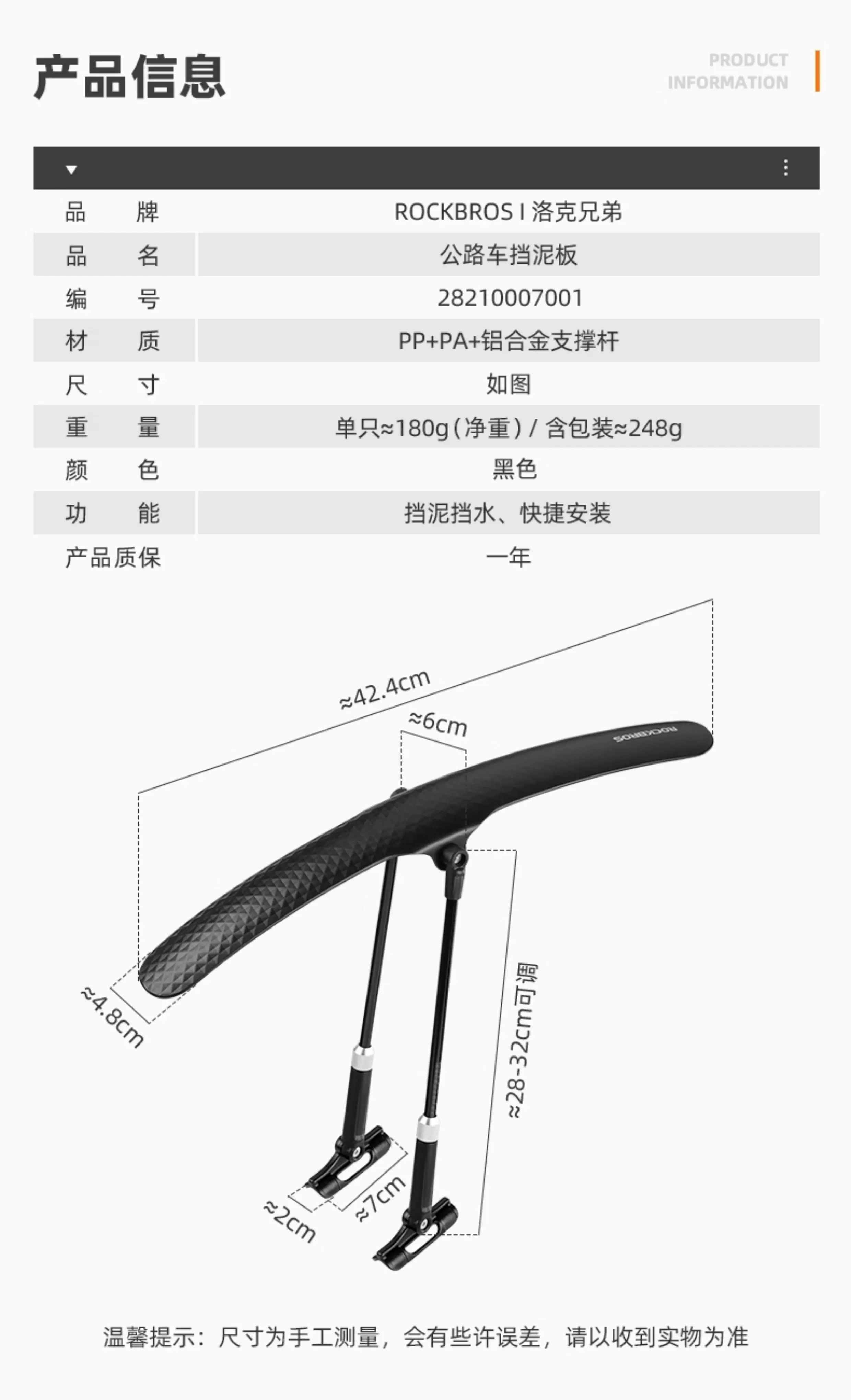 - Chắn bùn xe đạp đường trường Rock Brothers, tay lái thẳng, xe đạp du lịch đường trường, tháo lắp nhanh, 700C, chắn bùn, chắn mưa