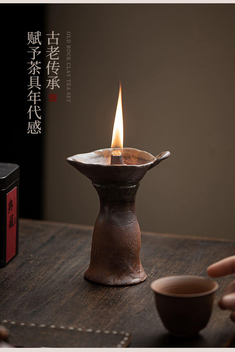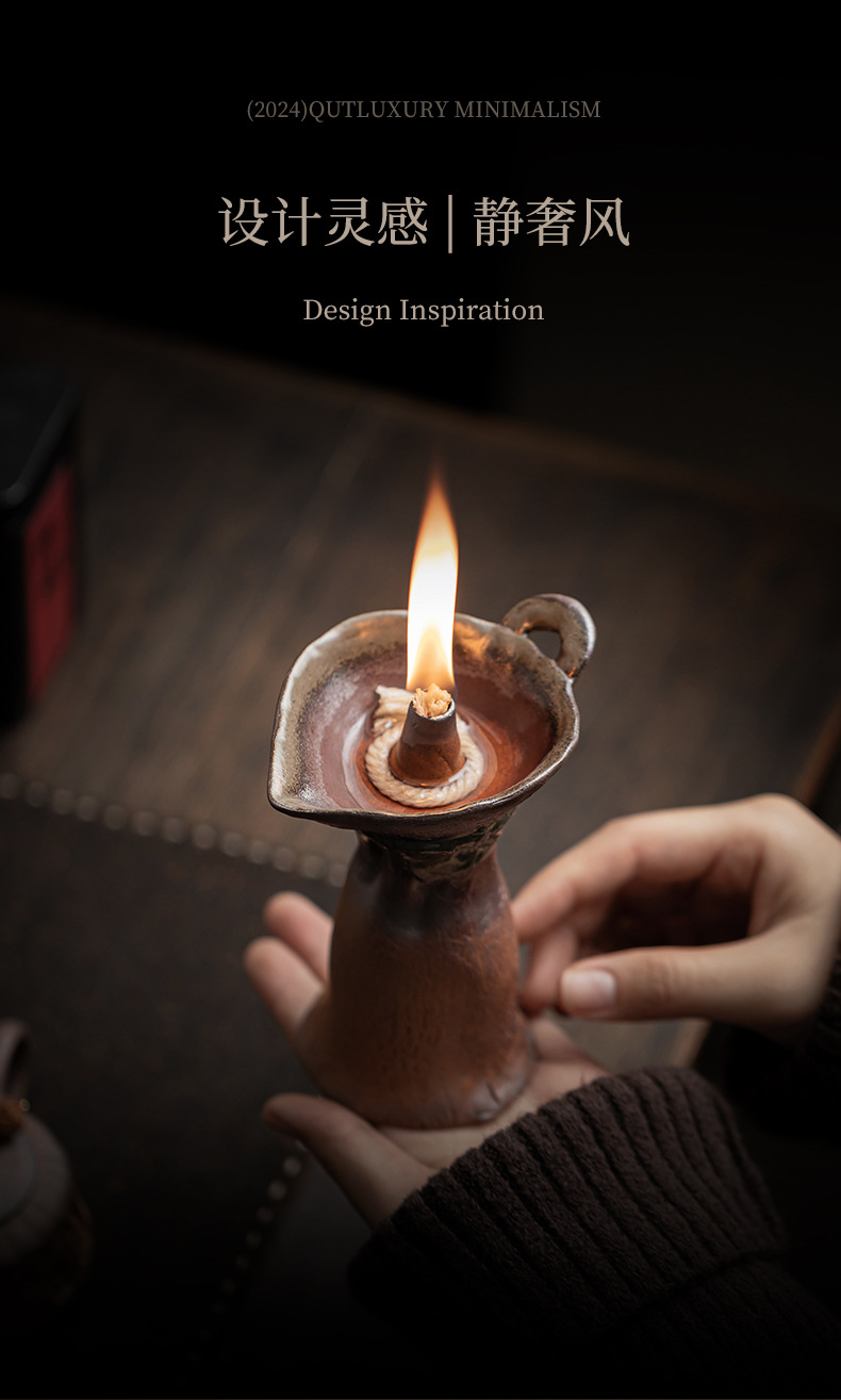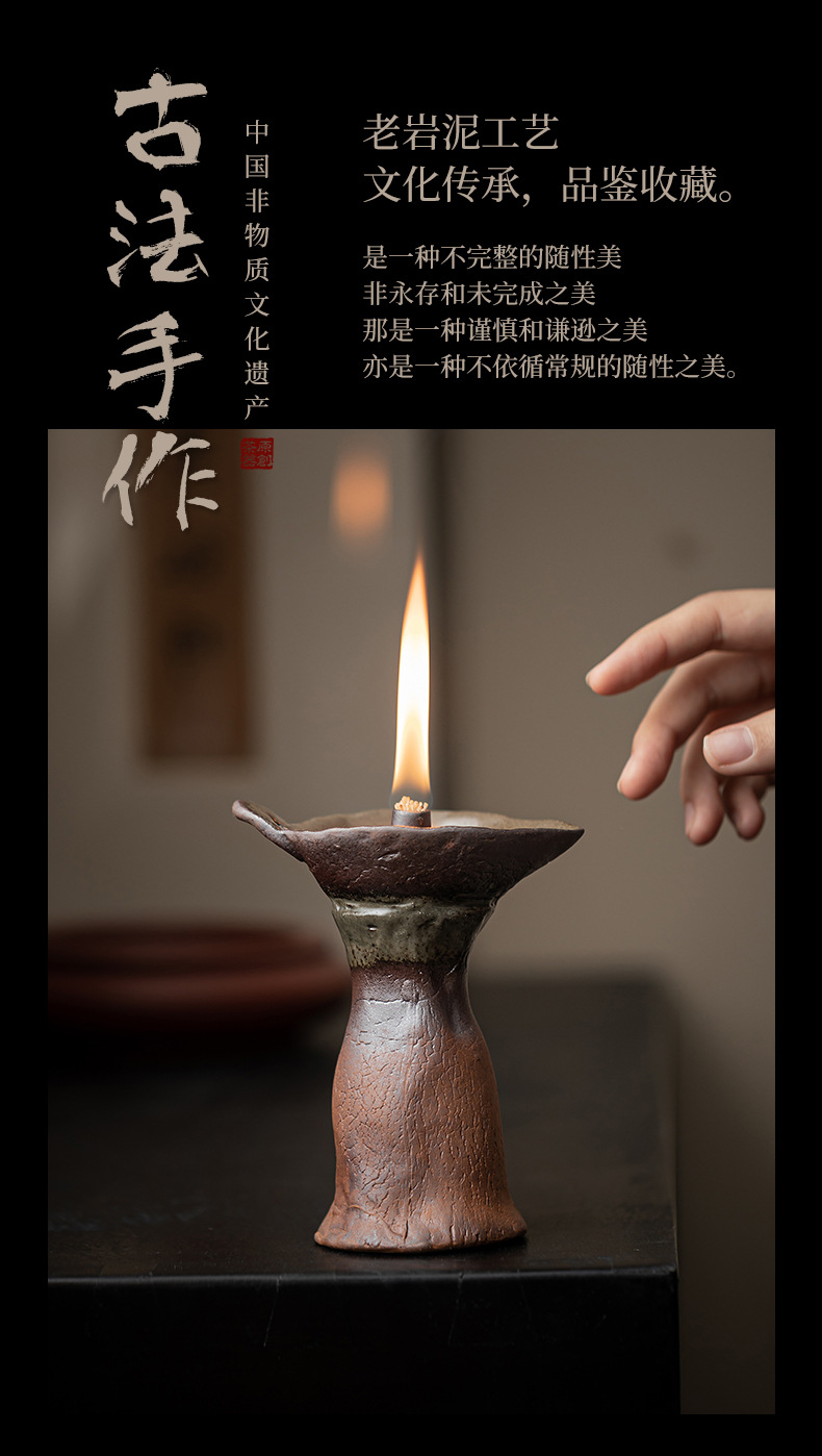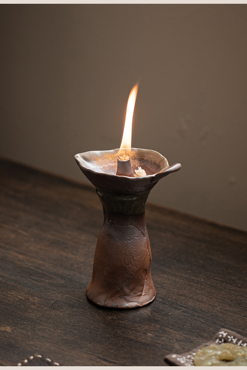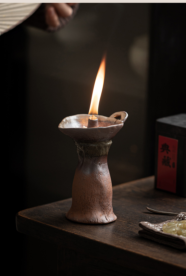 Chân nến gốm thô bùn đá cũ, chân đèn kiểu Trung Quốc, đèn ngủ thơm, đế nến cổ điển, đồ trang trí để bàn phòng trà gia đình