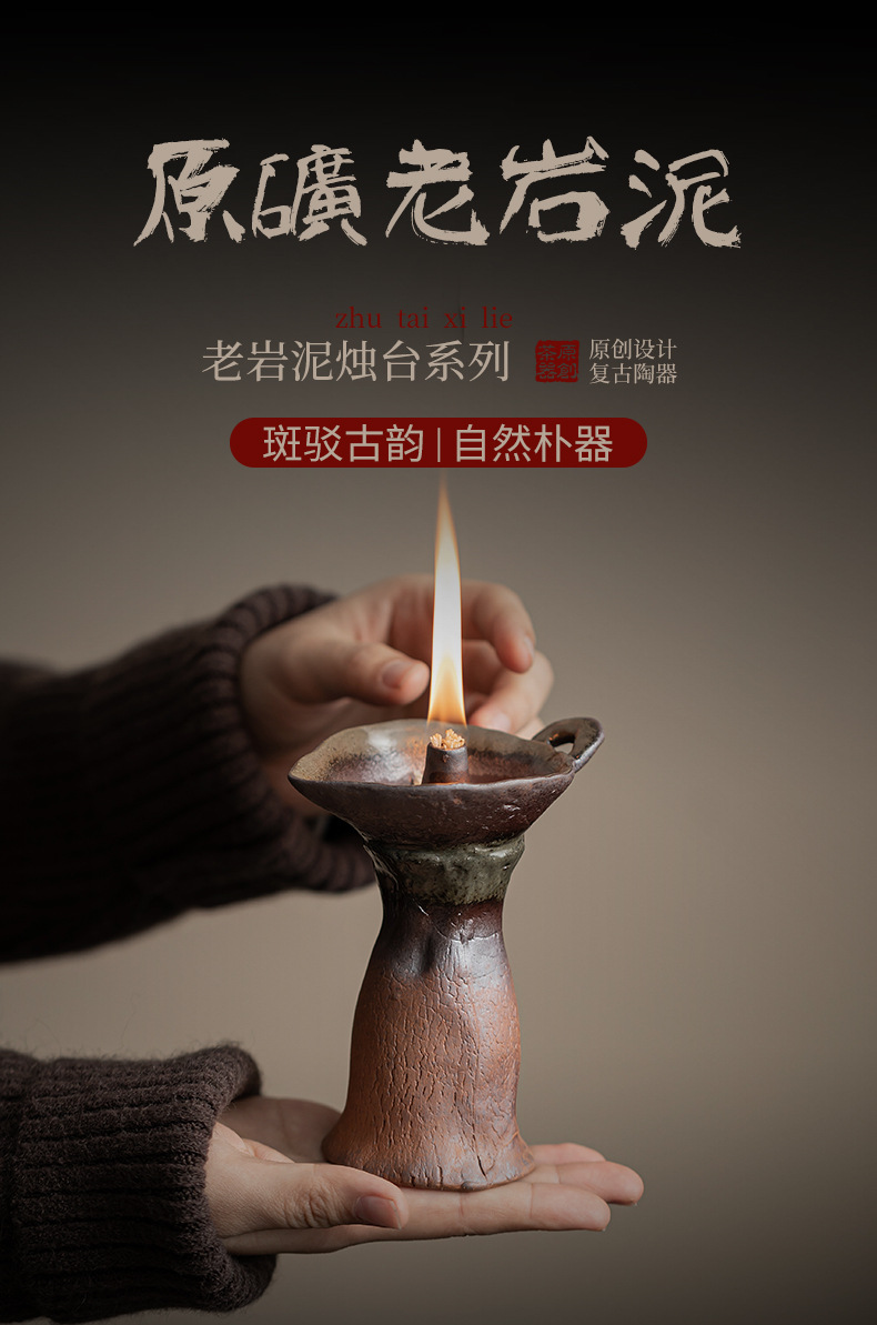- Chân nến gốm thô bùn đá cũ, chân đèn kiểu Trung Quốc, đèn ngủ thơm, đế nến cổ điển, đồ trang trí để bàn phòng trà gia đình
