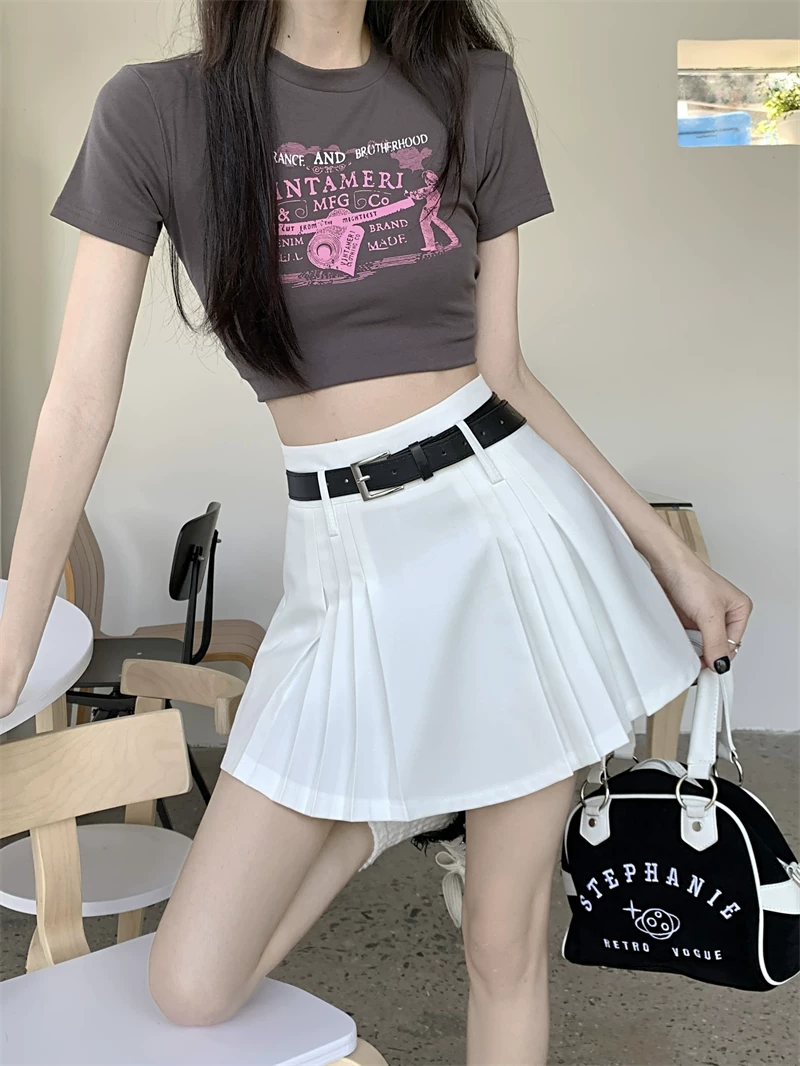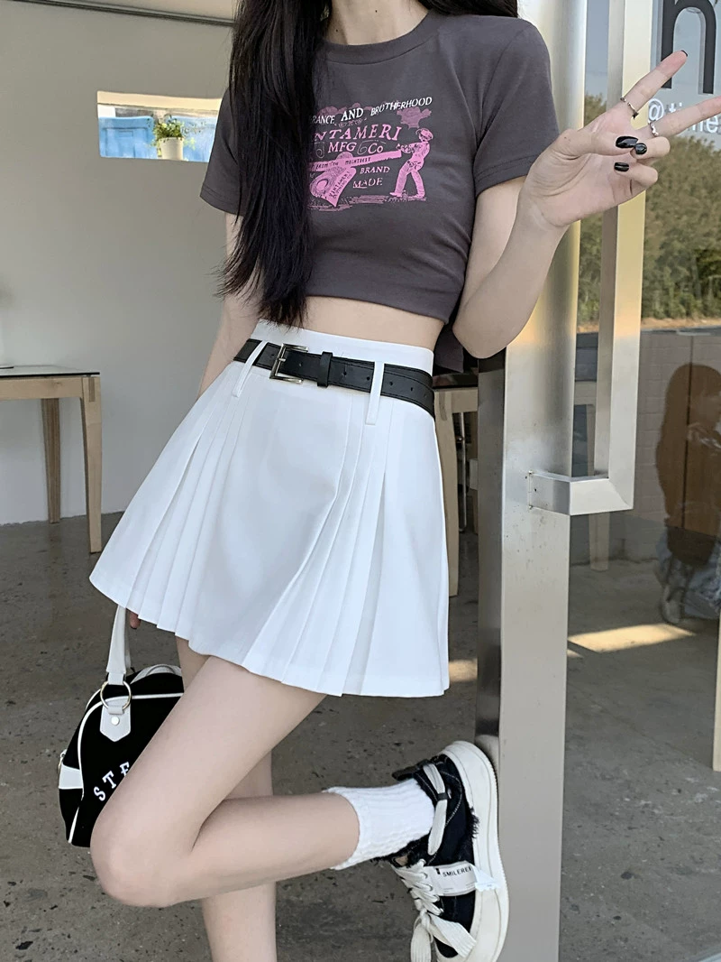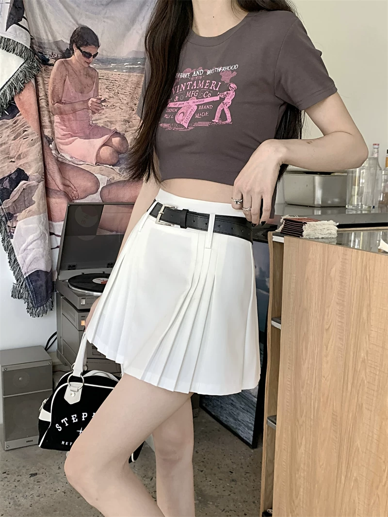 Chân váy trắng thời trang dành cho nữ, size lớn mùa hè, phong cách preppy, chân váy xếp ly cao eo, chân váy ngắn dáng A tôn dáng