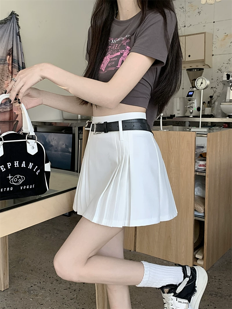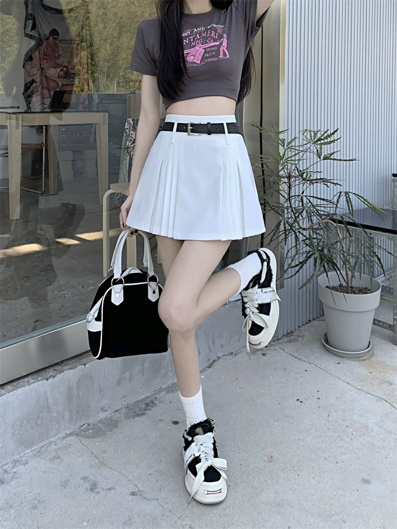- Chân váy trắng thời trang dành cho nữ, size lớn mùa hè, phong cách preppy, chân váy xếp ly cao eo, chân váy ngắn dáng A tôn dáng