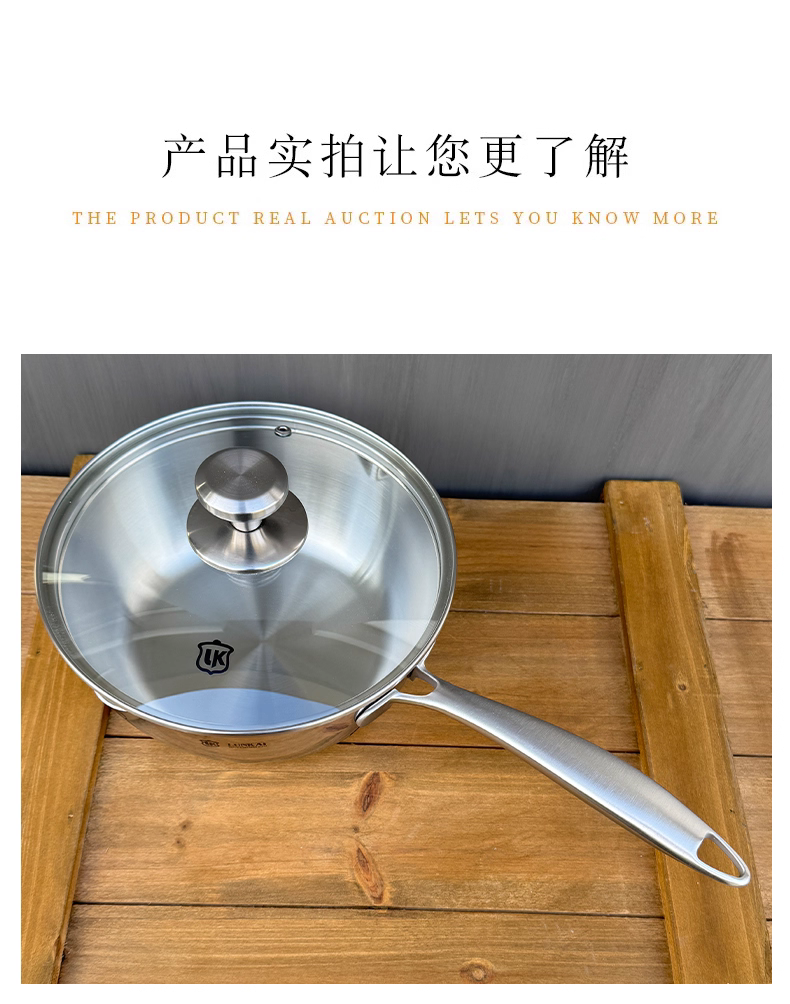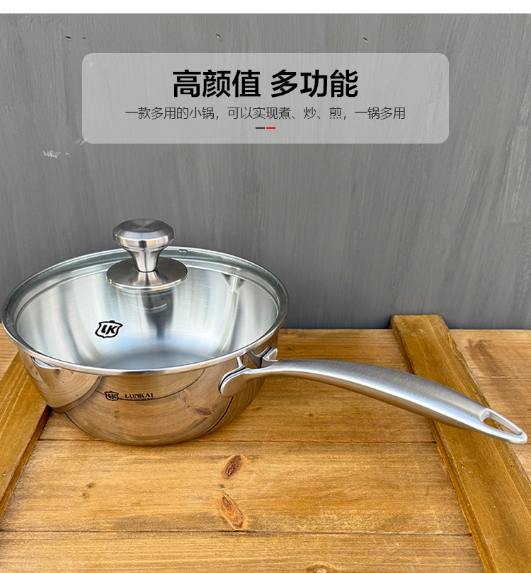 - Chảo nhỏ LunKai 18-10 ba lớp thép dùng để xào, hầm và nấu súp, chảo đa năng đáy phẳng, dùng được trên bếp từ, không tráng men.