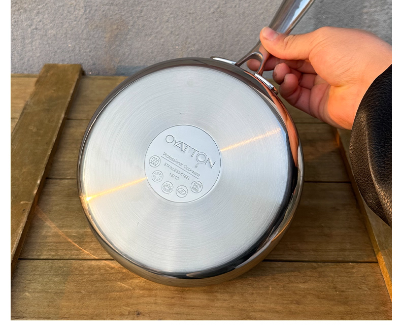 - Chảo rán inox 18/10, không tráng phủ, chống dính, chảo làm bánh kếp, chảo bổ sung thức ăn cho bé, thích hợp cho bếp từ và bếp gas.