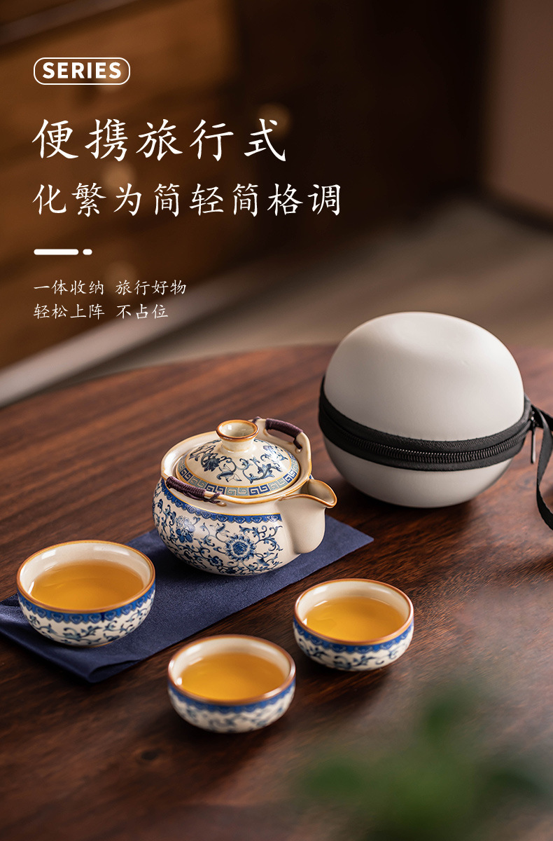 - Chậu cầm tay du lịch bộ trà Kung Fu bộ nhỏ di động cắm trại ngoài trời gốm sứ cốc khách nhanh một bình ba cốc bán buôn