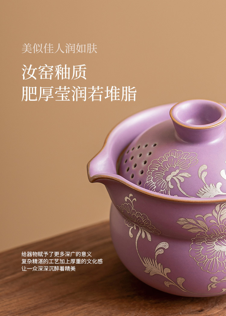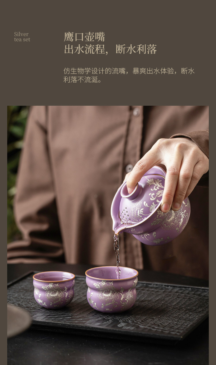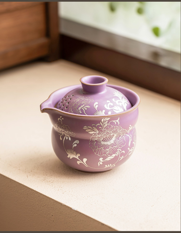 Chậu cầm tay gốm sứ, mẫu đơn bạc, bình trà tử đinh hương, bình trà Fulu màu tím, cốc trà, bát pha trà có lọc chống bỏng cao cấp