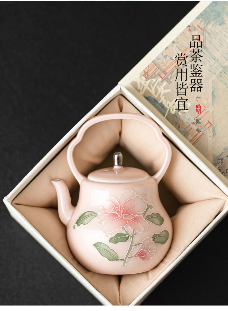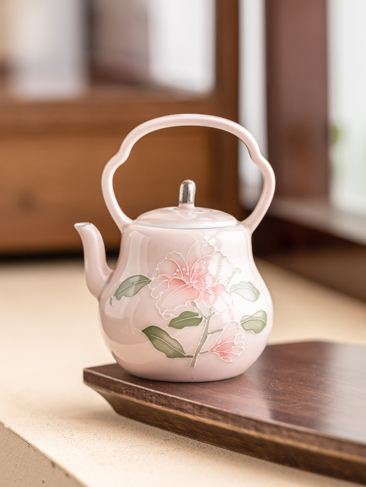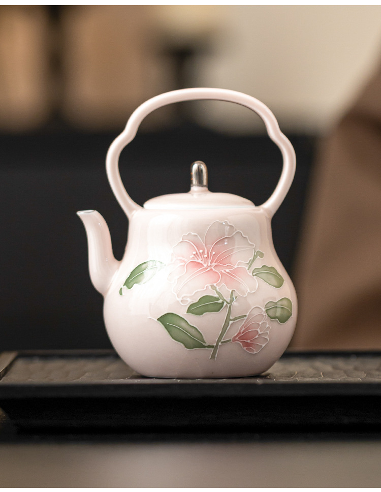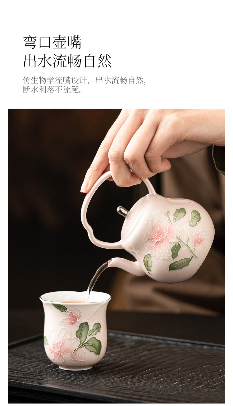 Chậu cầm xà chạm khắc hoa huệ hồng vẽ tay ấm trà gốm sứ vẽ tay gia dụng ấm trà đơn bộ trà cao cấp có lọc ấm pha trà