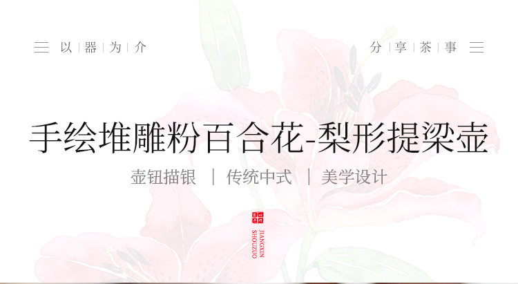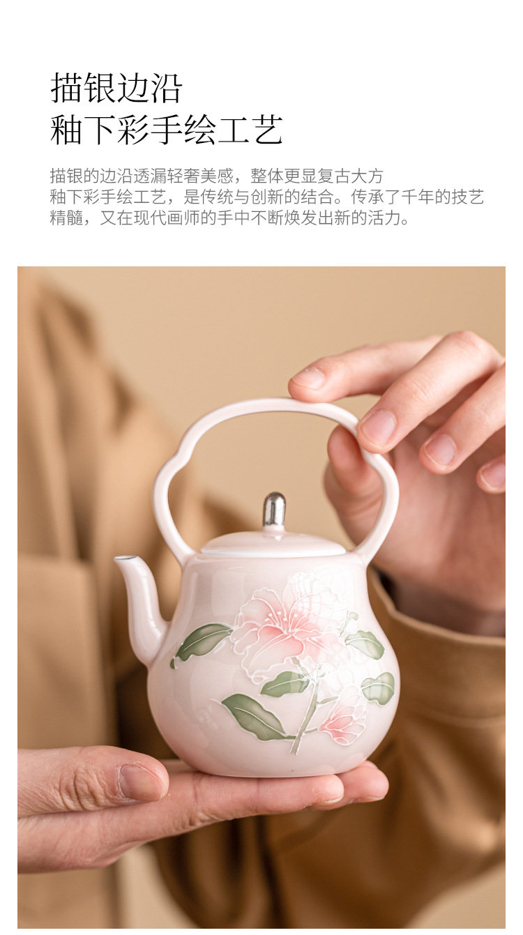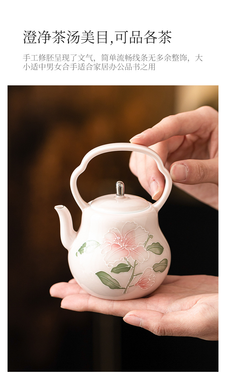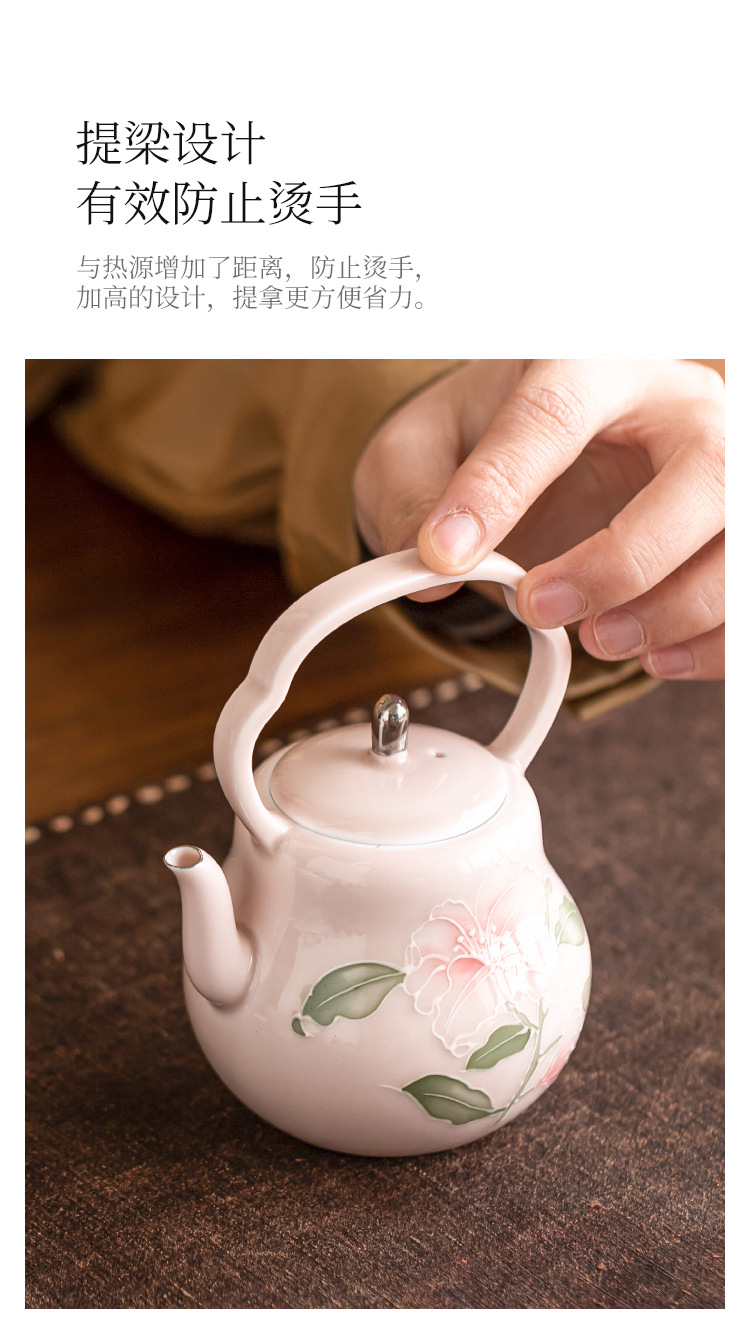 Chậu cầm xà chạm khắc hoa huệ hồng vẽ tay ấm trà gốm sứ vẽ tay gia dụng ấm trà đơn bộ trà cao cấp có lọc ấm pha trà