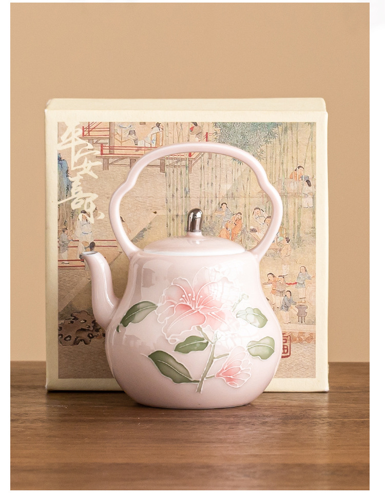 - Chậu cầm xà chạm khắc hoa huệ hồng vẽ tay ấm trà gốm sứ vẽ tay gia dụng ấm trà đơn bộ trà cao cấp có lọc ấm pha trà