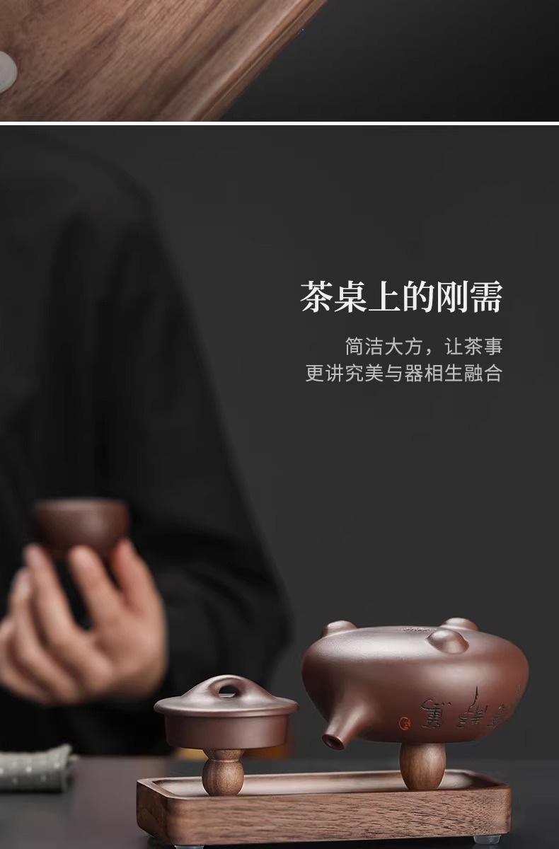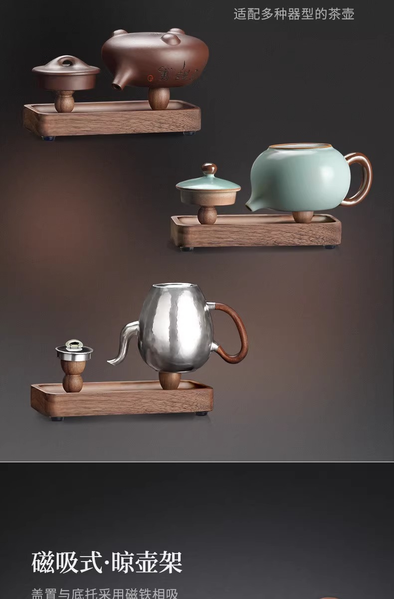 Chậu đất sét màu tím Gỗ Óc Chó Đen Bắc Mỹ, giá phơi ấm, nắp gỗ đặc, giá treo nắp, Giá phơi cốc, không pha trà đạo