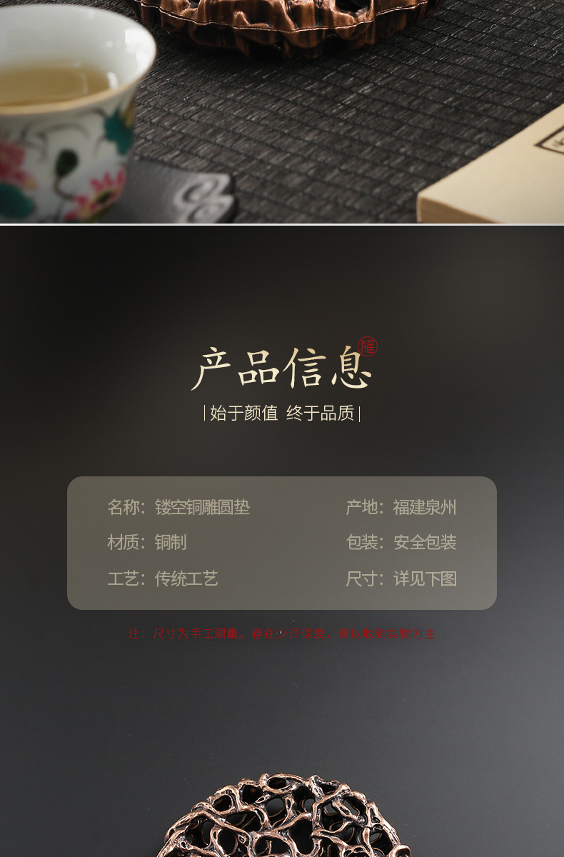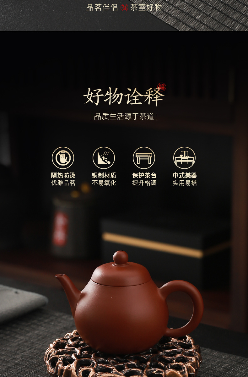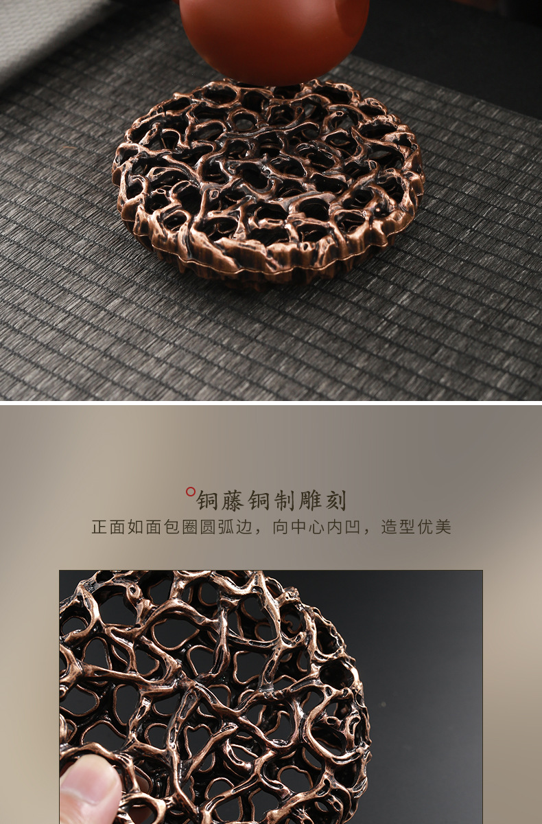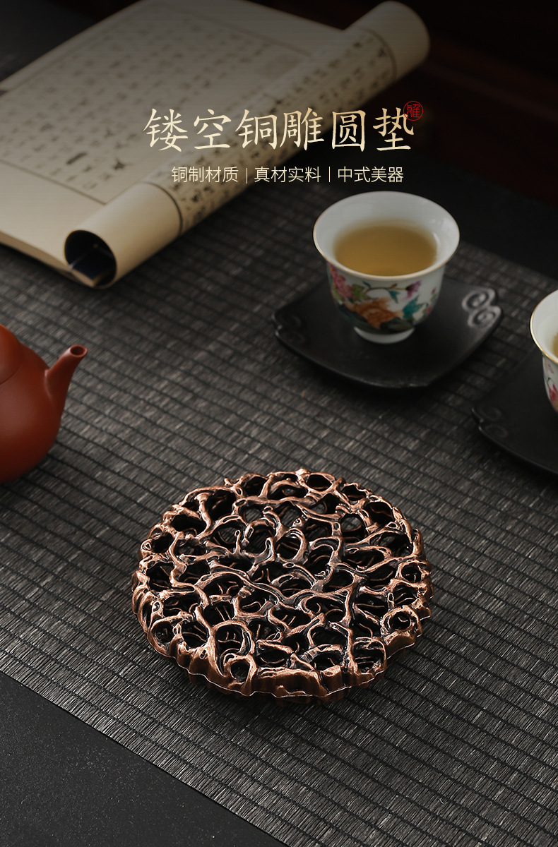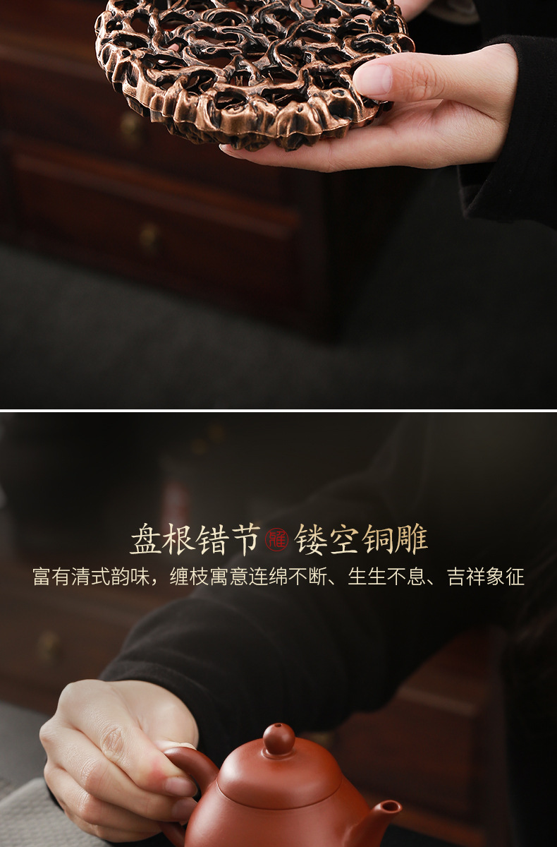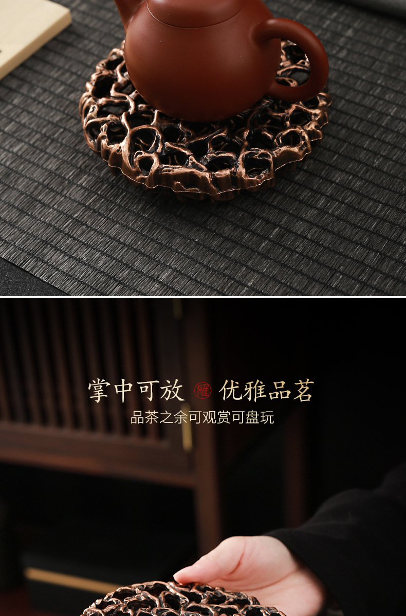 - Chậu đồng hình tròn sáng tạo Da'antang, bàn pha khô, phụ kiện Bộ trà Kung Fu, chậu đất sét tím, đệm ấm, nắp, Giá đỡ bát