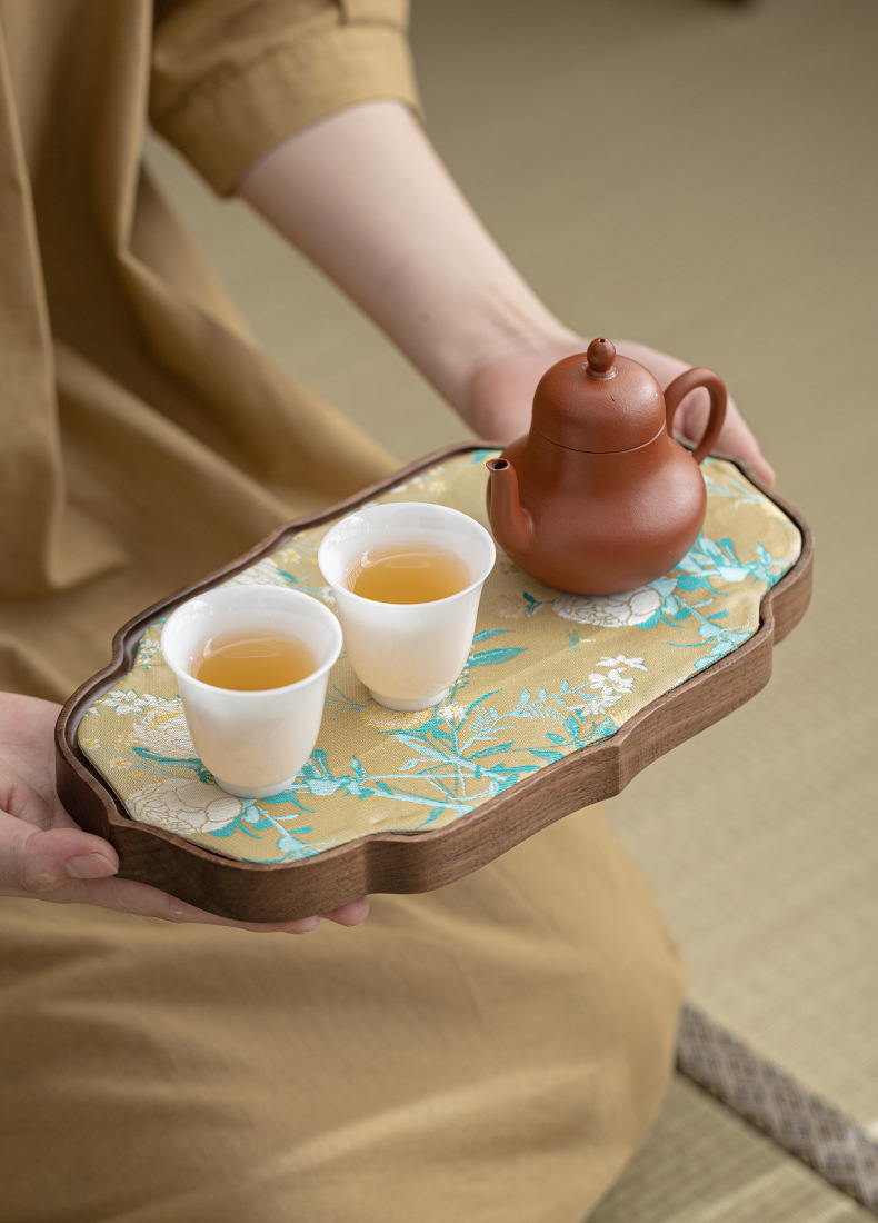 Chậu gỗ óc chó Bắc Mỹ đệm trà Song Jin Fulu giả phong cách Trung Quốc chậu gia dụng khay đựng trà Kung Fu phụ kiện thiền