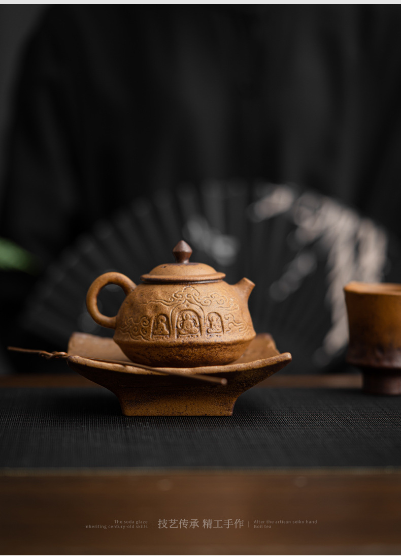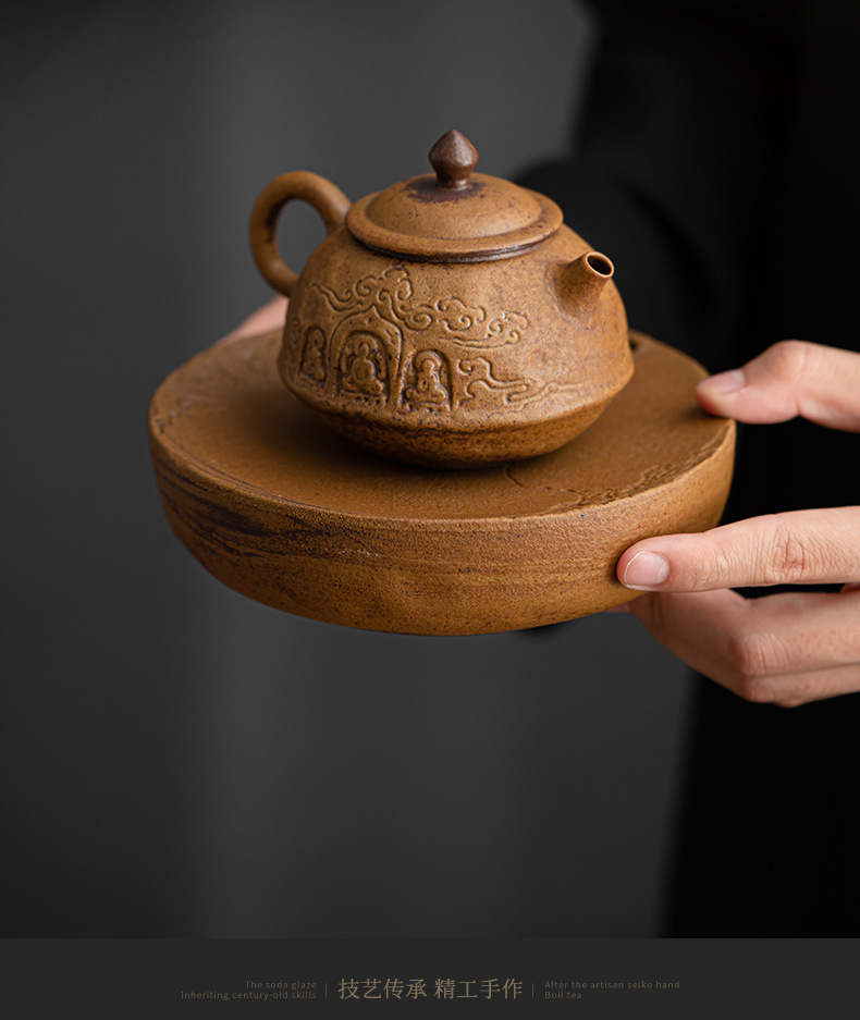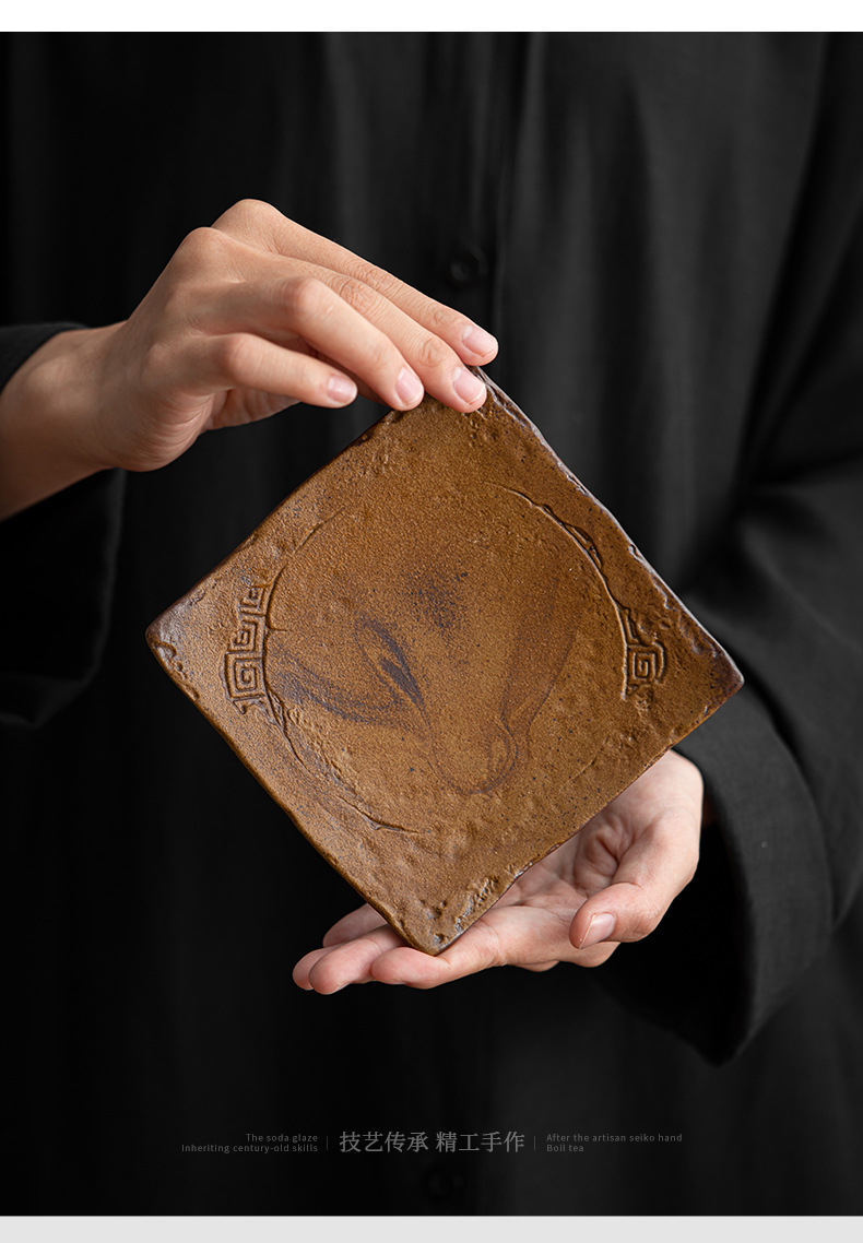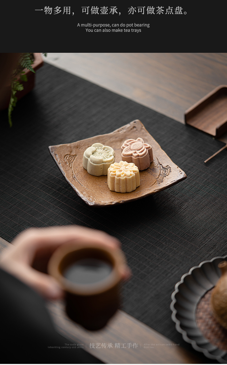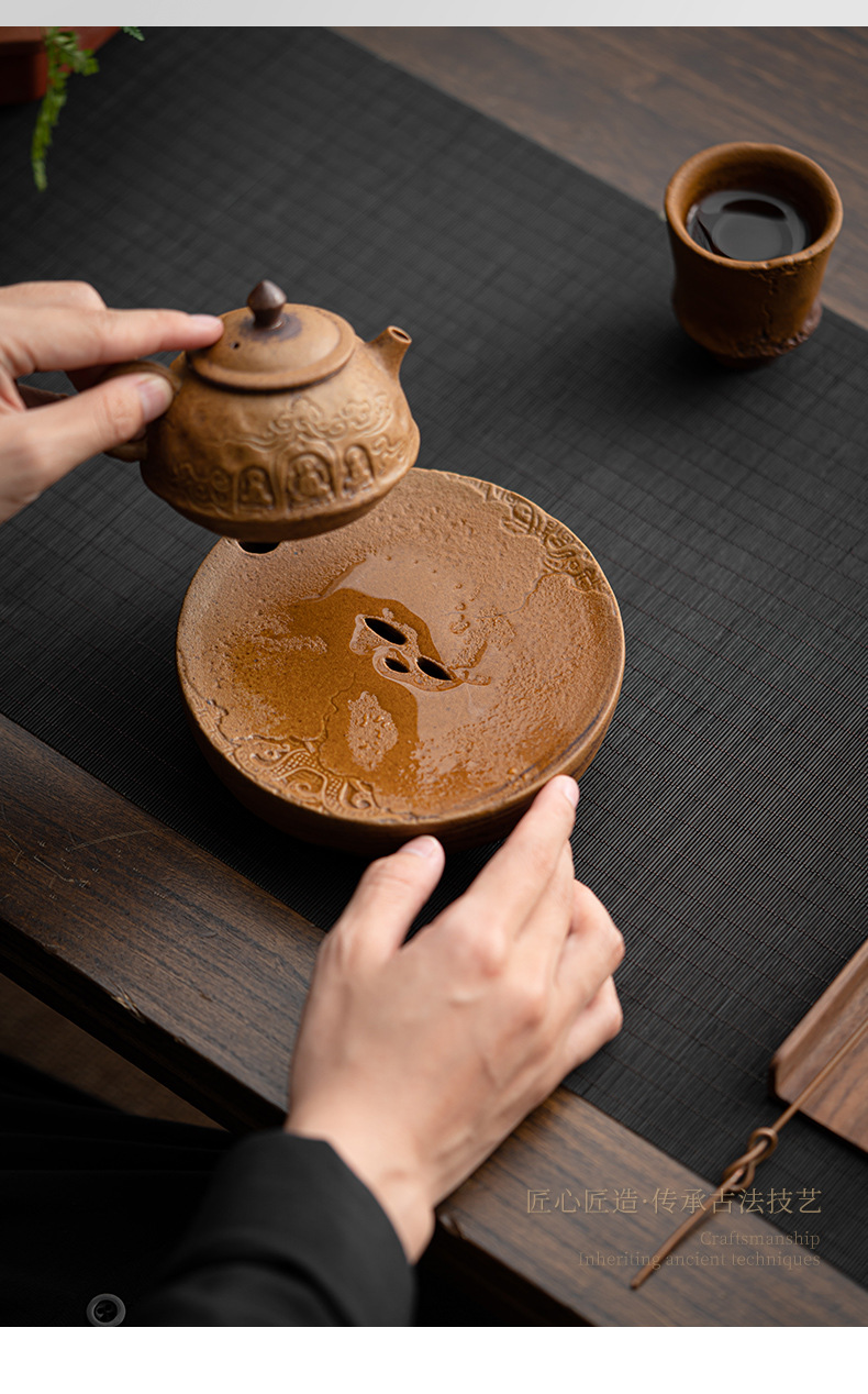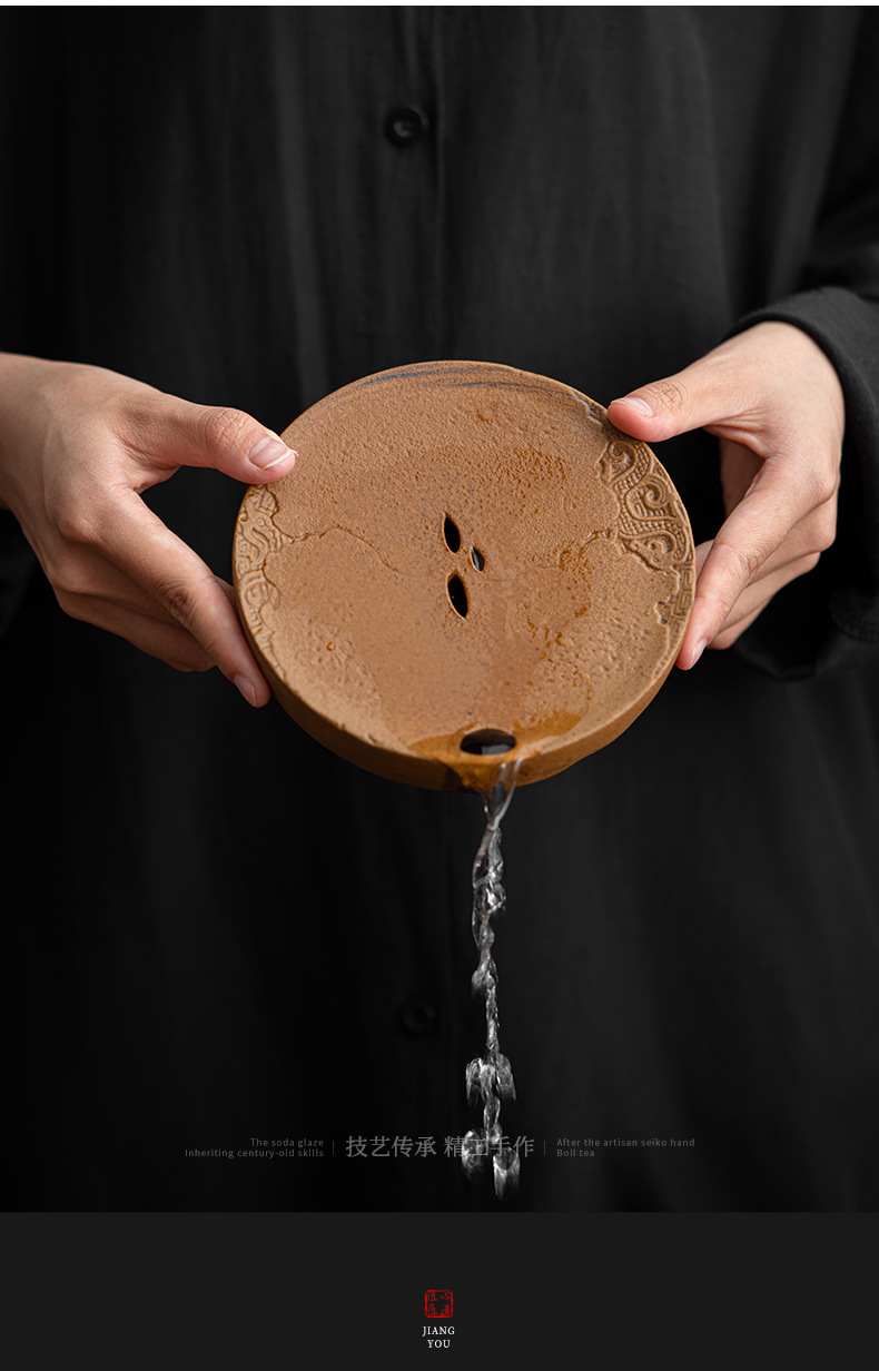 Chậu gốm thô men nước sốt Gốm Đá cũ bùn đá hoa văn rồng, bàn ủ khô gia dụng cổ điển, khay đựng cốc, khay đựng trà, khay đựng trà, phụ kiện trà đạo