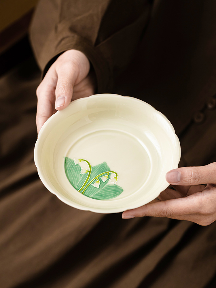 Chậu hoa hoa hoa ngọc lan vẽ tay, khay đựng ấm Trung Quốc, đệm ấm trà, khay trà, bàn pha trà khô, cao cấp đơn