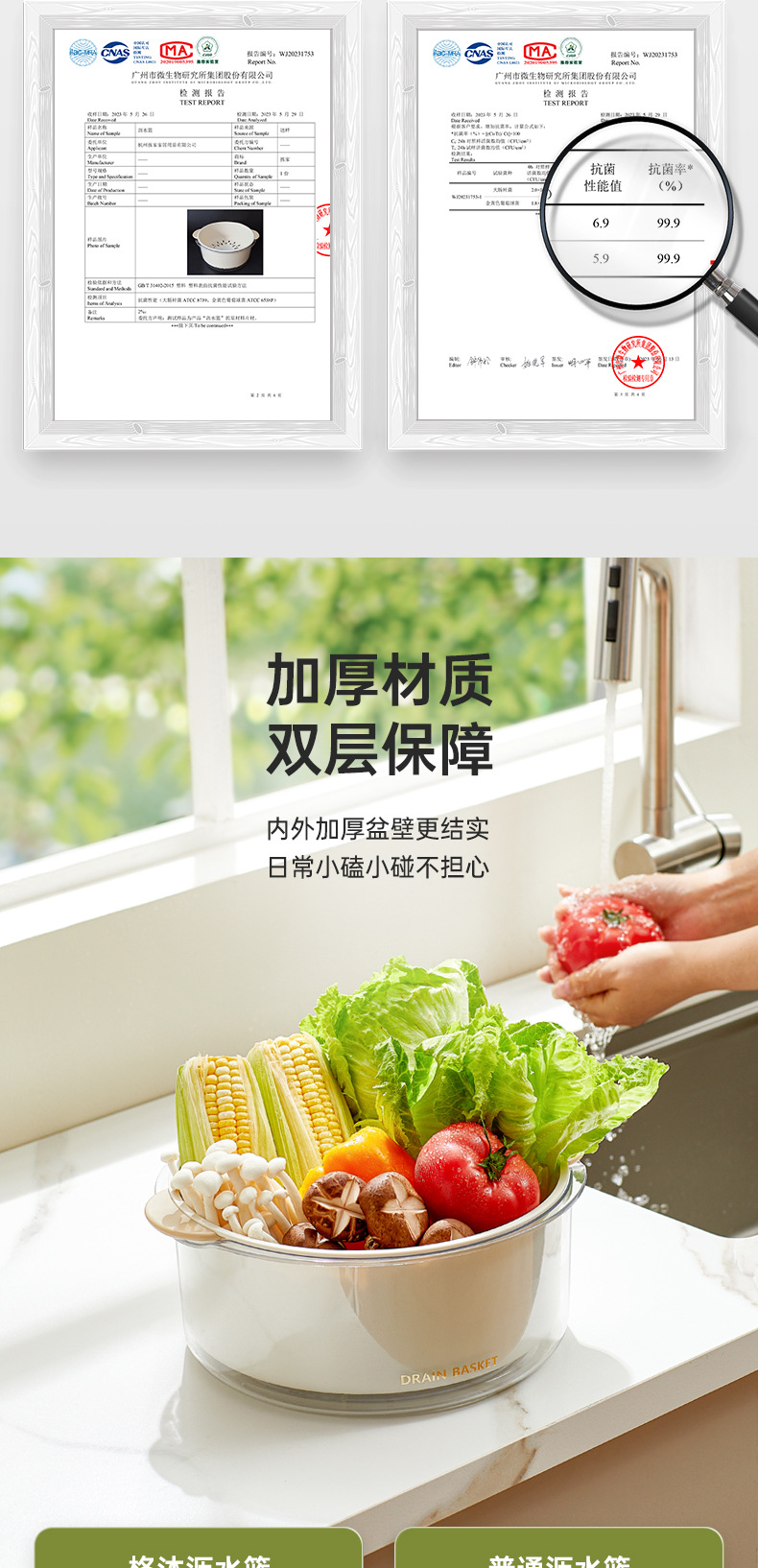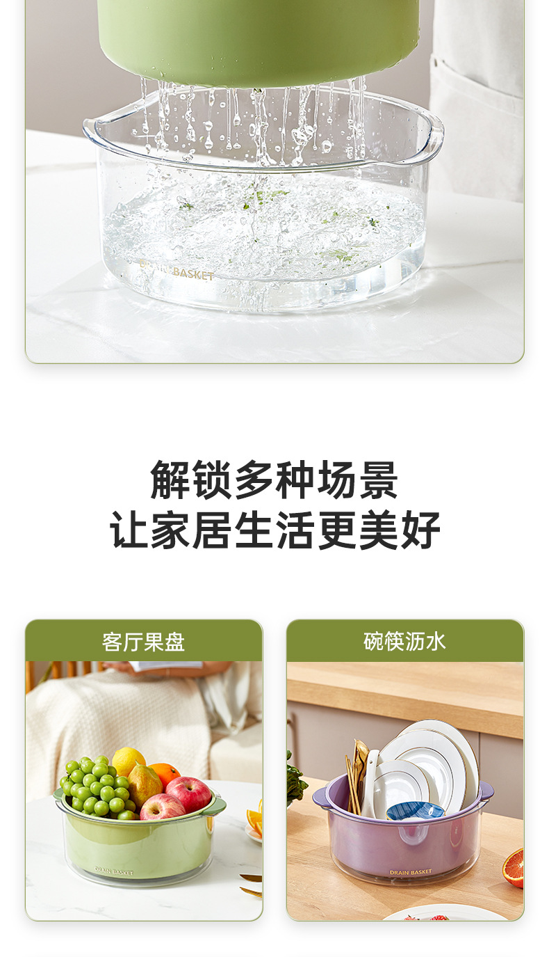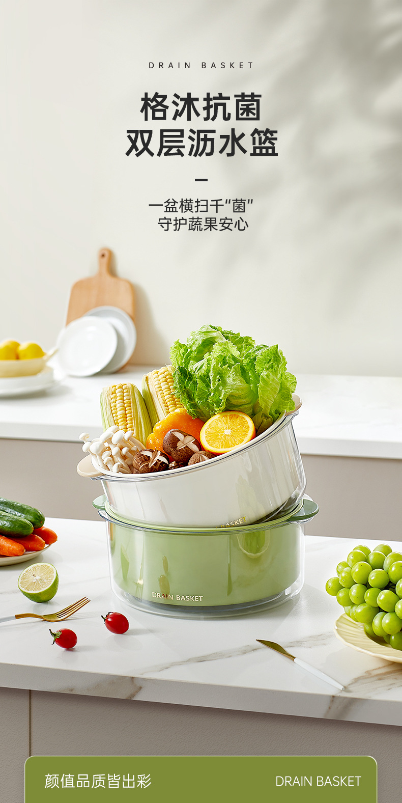 - Chậu rửa rau hai lớp dày mới Giỏ nhựa thoát nước chậu rửa rau xanh rửa bát gia dụng