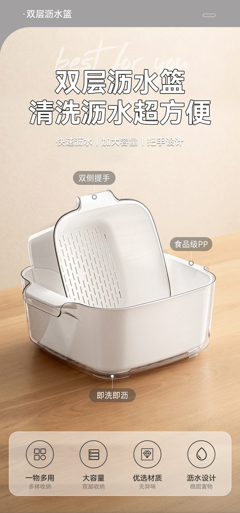 - Chậu rửa rau hai tầng giỏ thoát nước Bếp gia dụng Khay đựng trái cây nhựa lọc nước giỏ đựng rau rửa giỏ đựng rau rửa trái cây